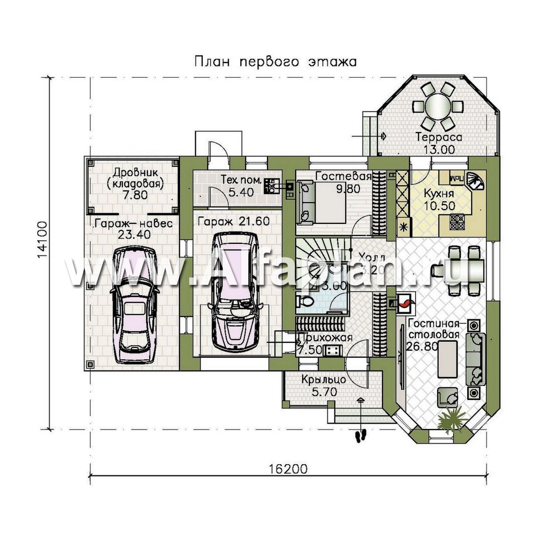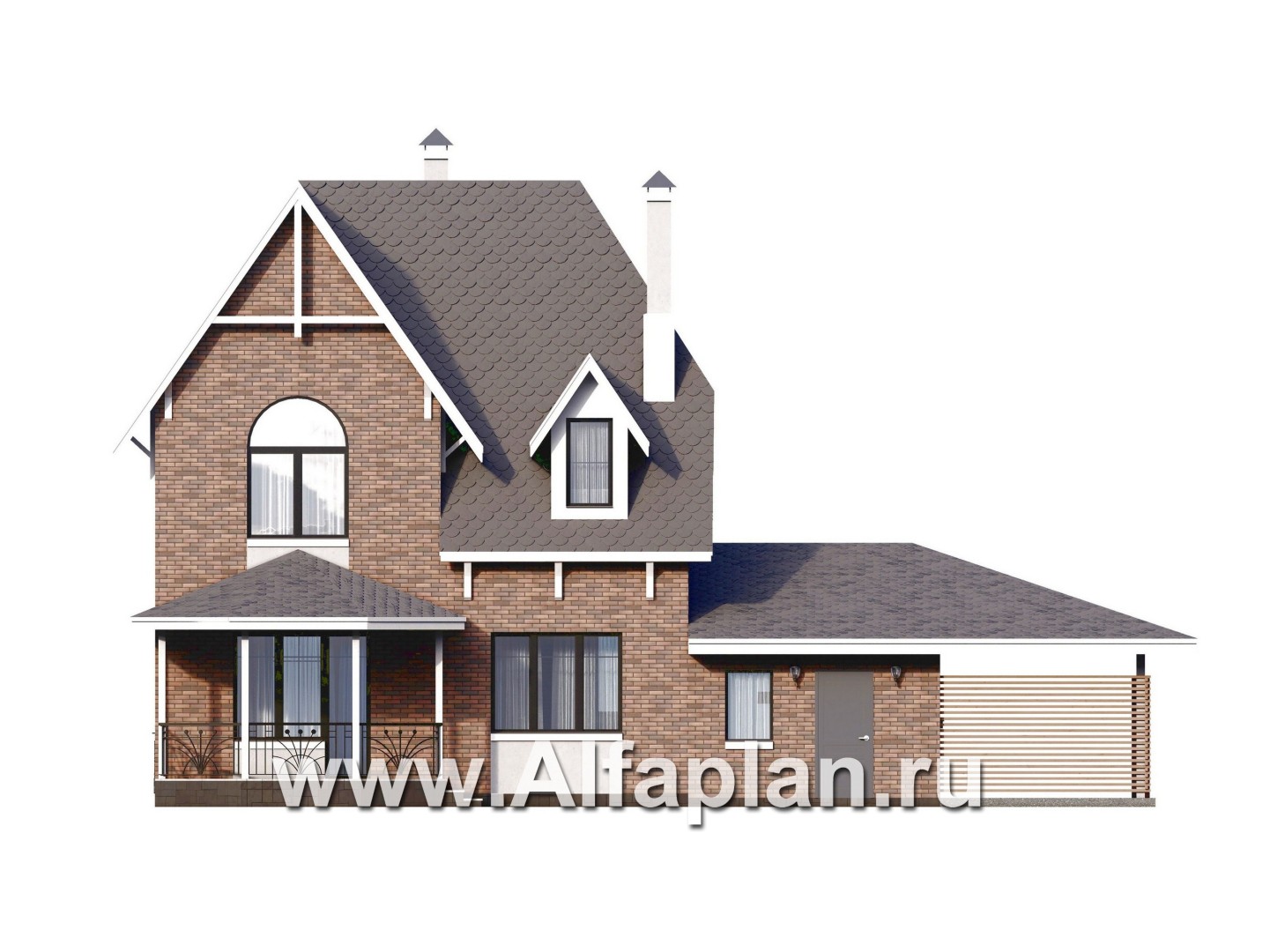 «Аврора» - проект двухэтажного дома из газобетона с эркером, с террасой и гаражом