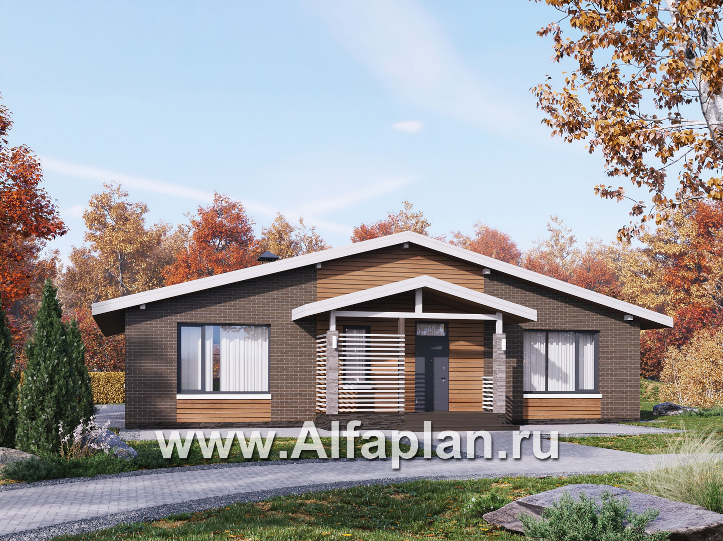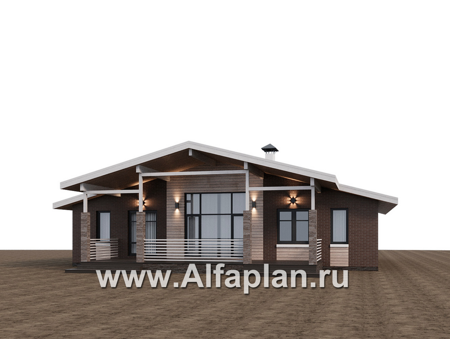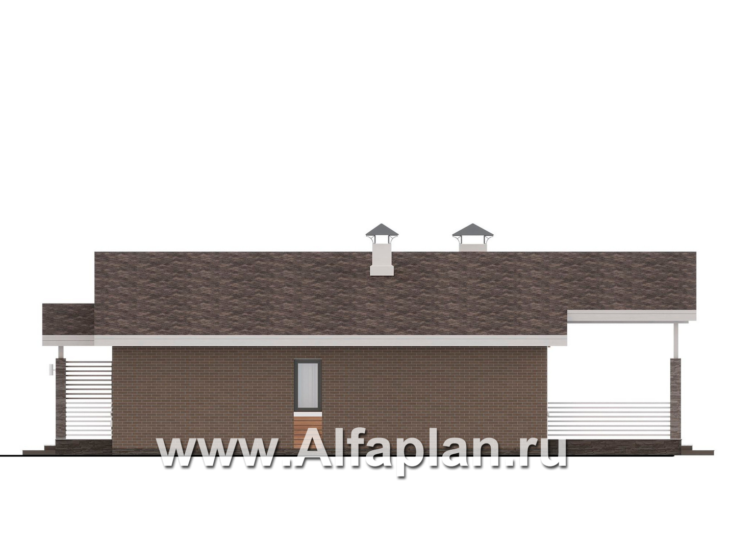 «Симплекс» - проект одноэтажного дома из газобетона, с террасой, с двускатной крышей