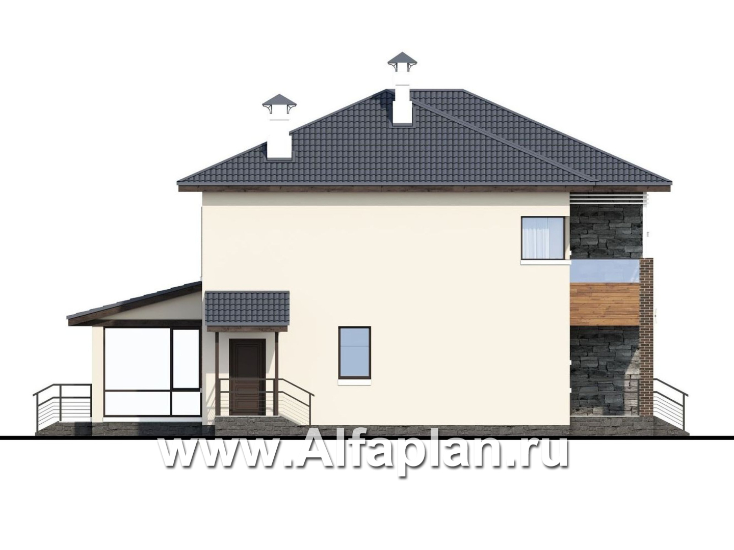 560A «Прайд» - проект современного двухэтажного дома, мастер спальня, с террасой и сауной