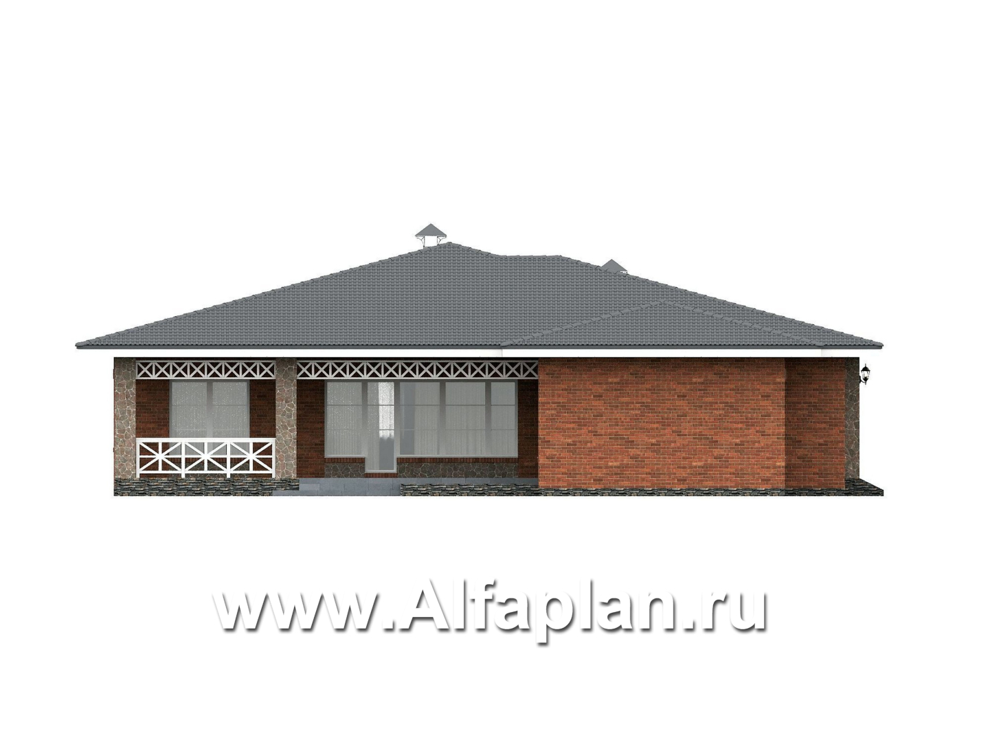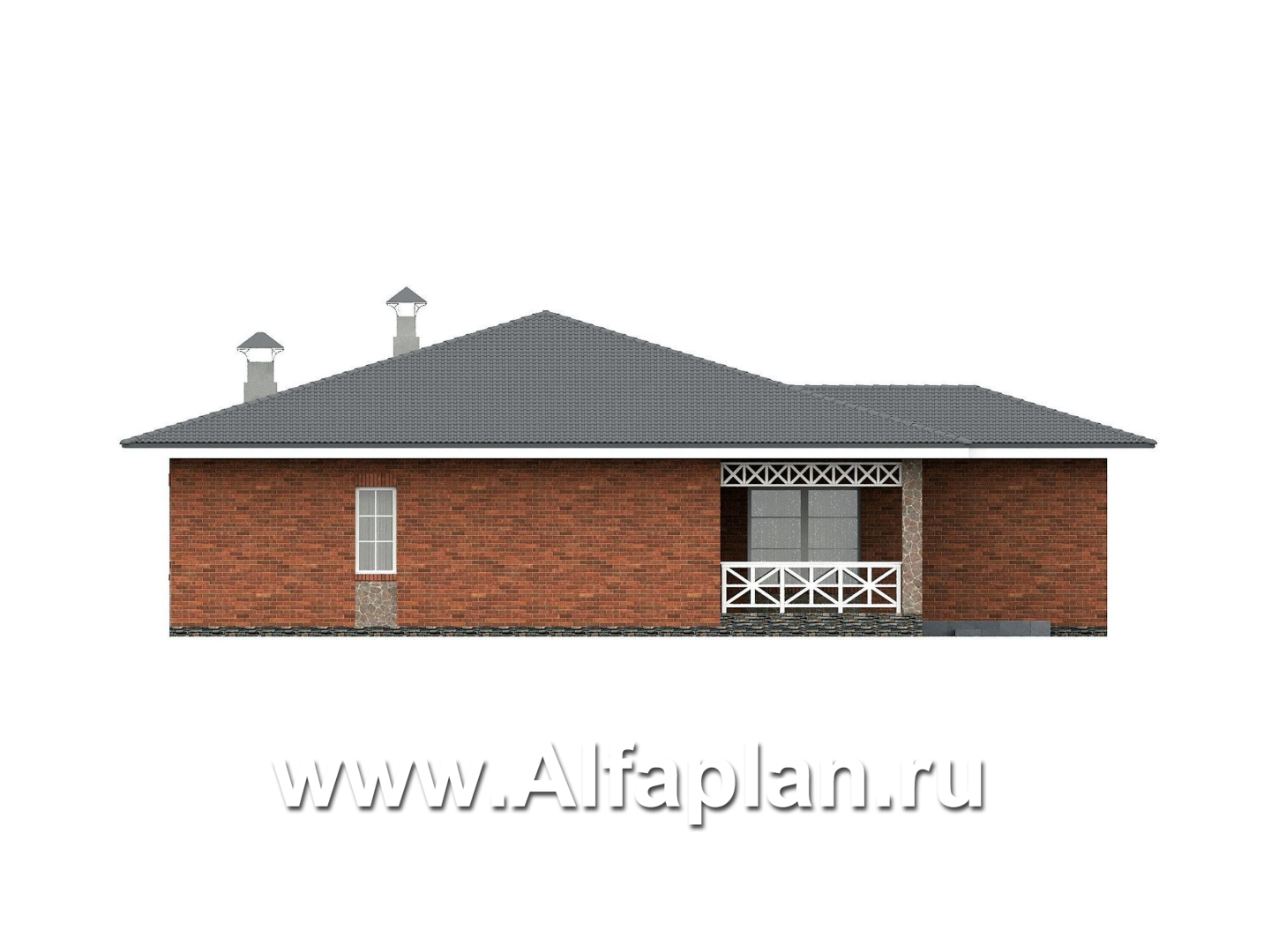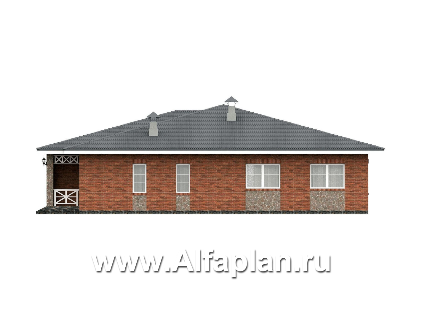 666A-2 «Горизонталь» - проект одноэтажного дома с террасой, в немецком стиле, баварская кладка