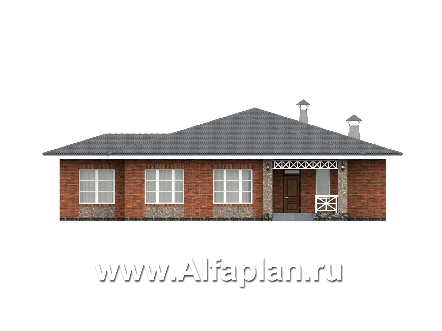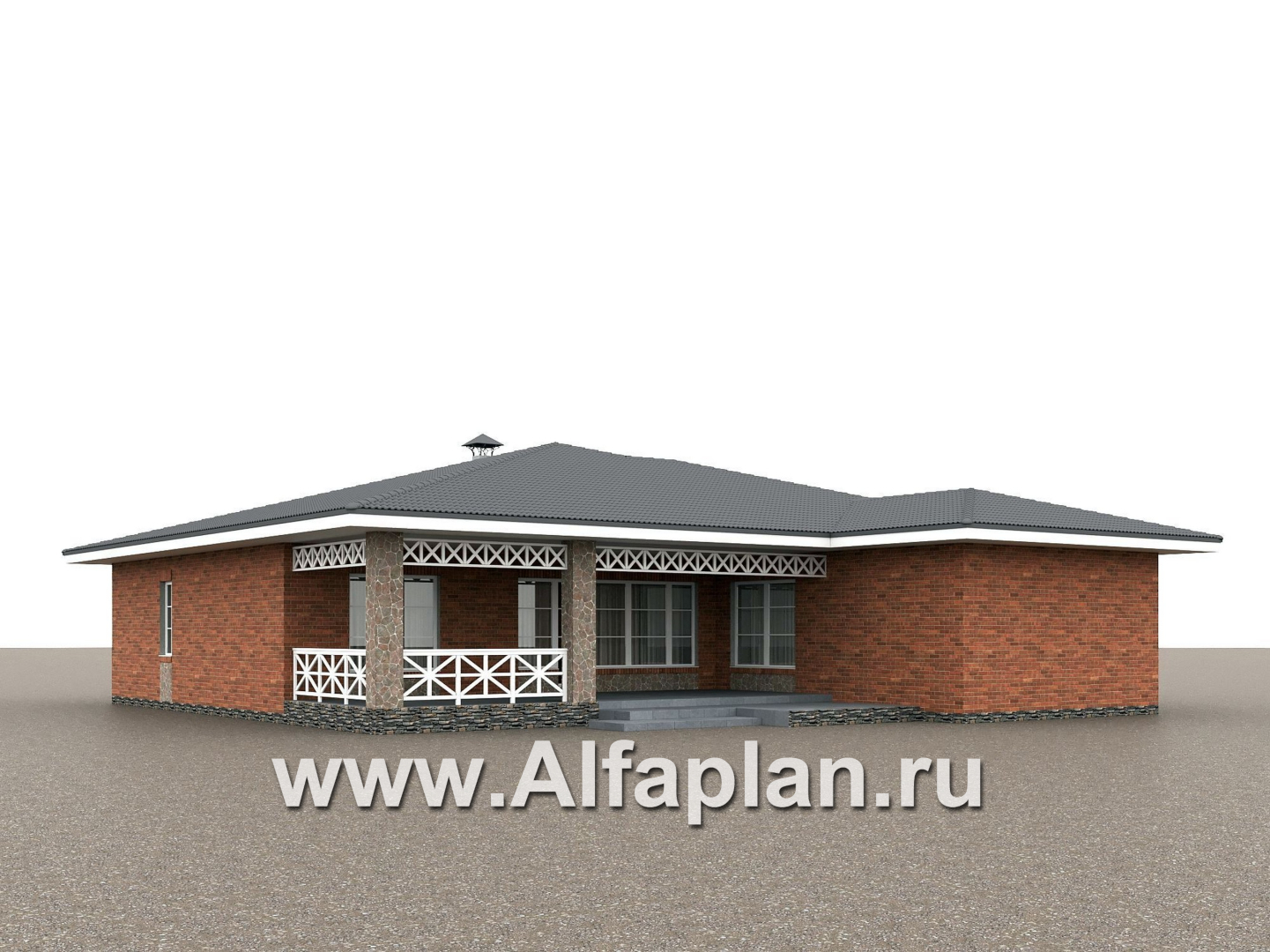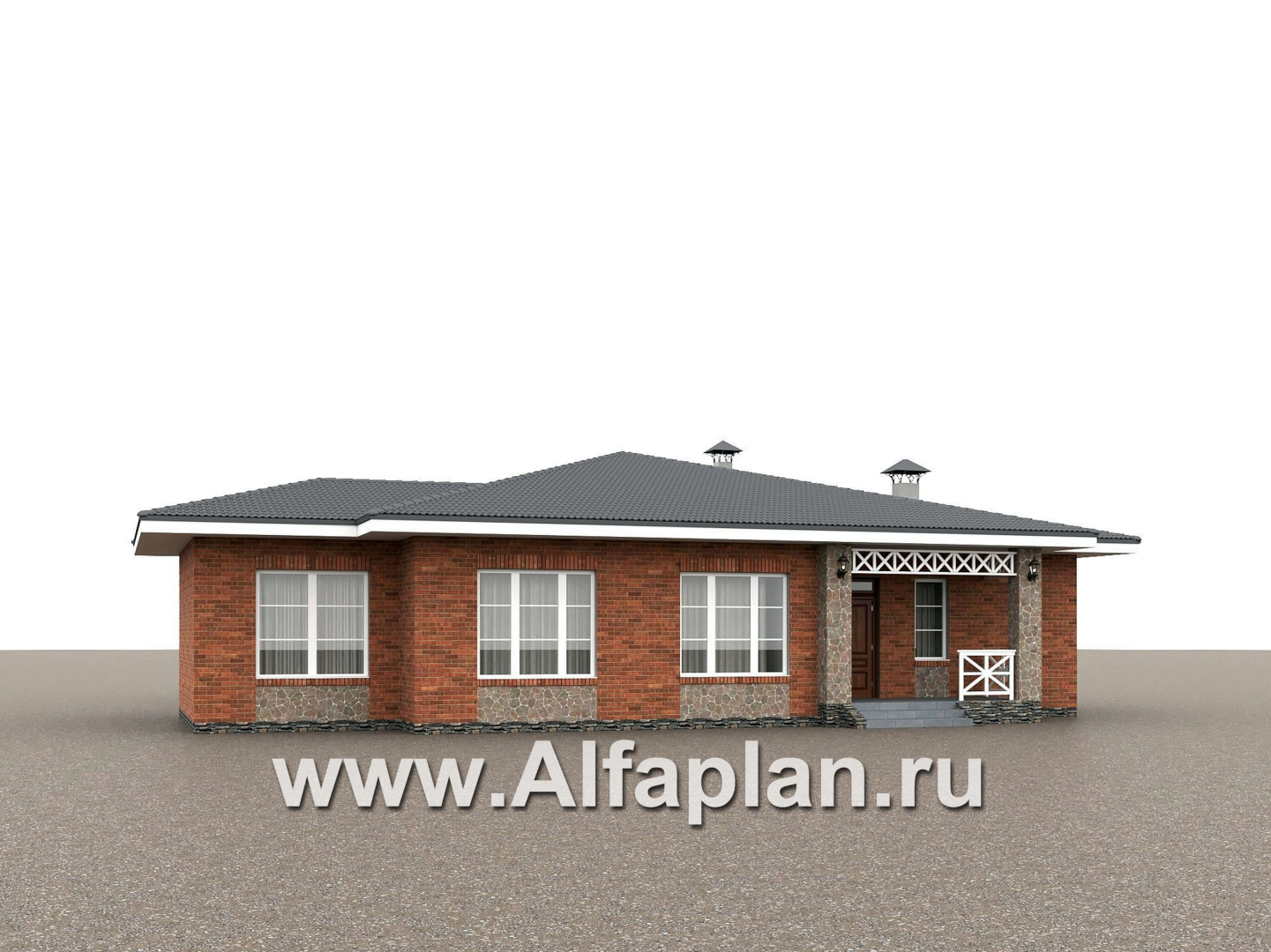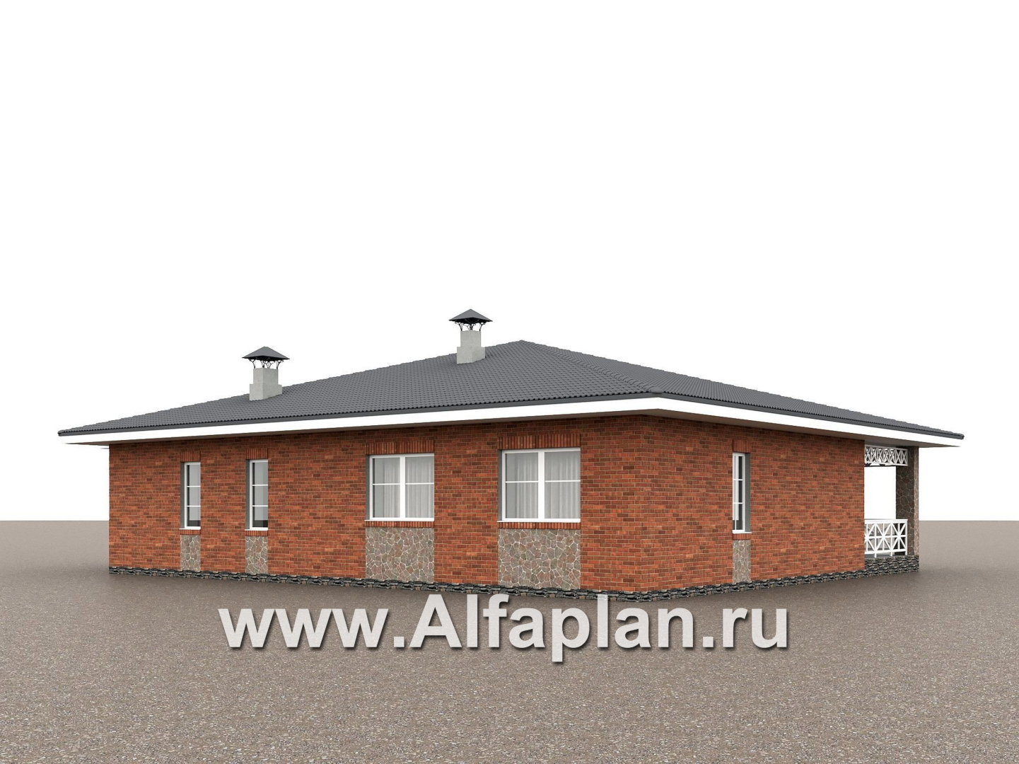 666A-2 «Горизонталь» - проект одноэтажного дома с террасой, в немецком стиле, баварская кладка