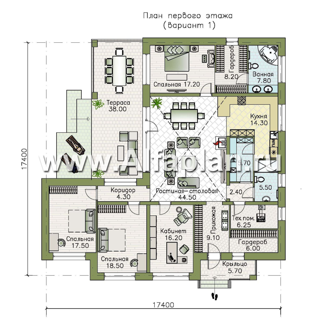 Проект одноэтажного дома «Горизонталь» 666А, 206 м2, 4 спальни, 2 варианта планировки.