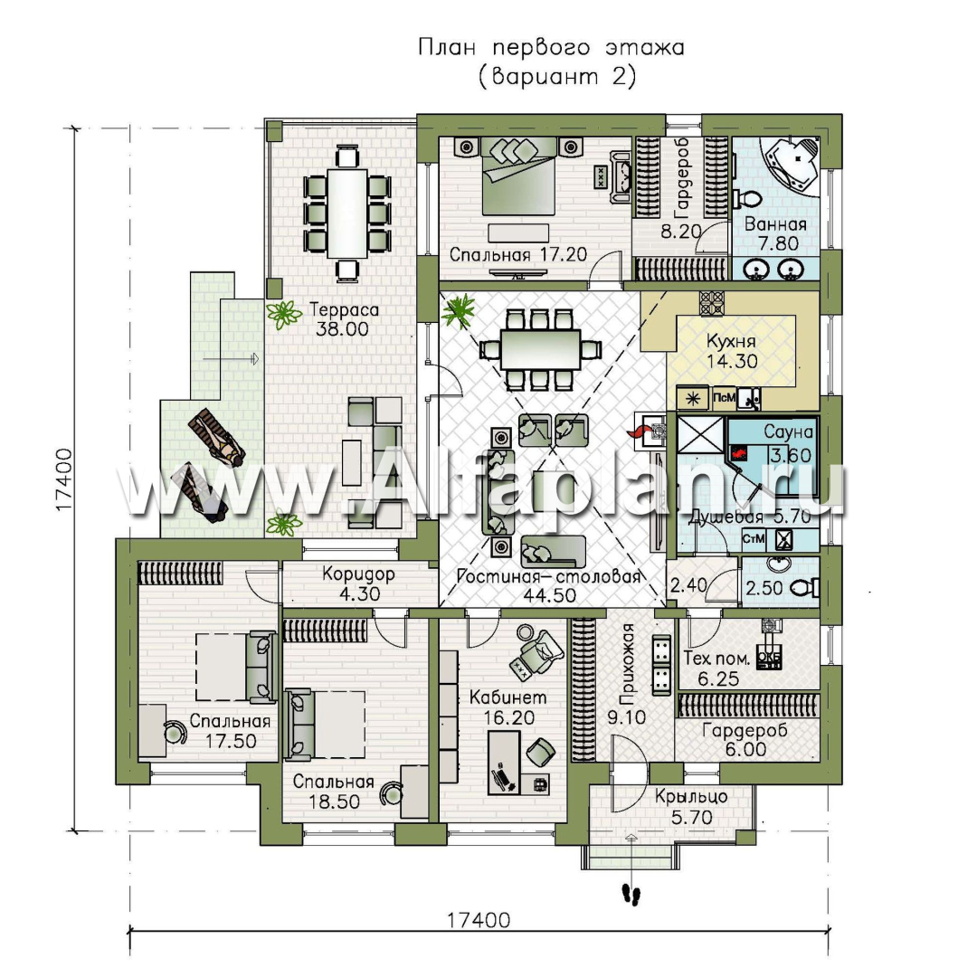 2. Есть вариант планировки дома с сауной.