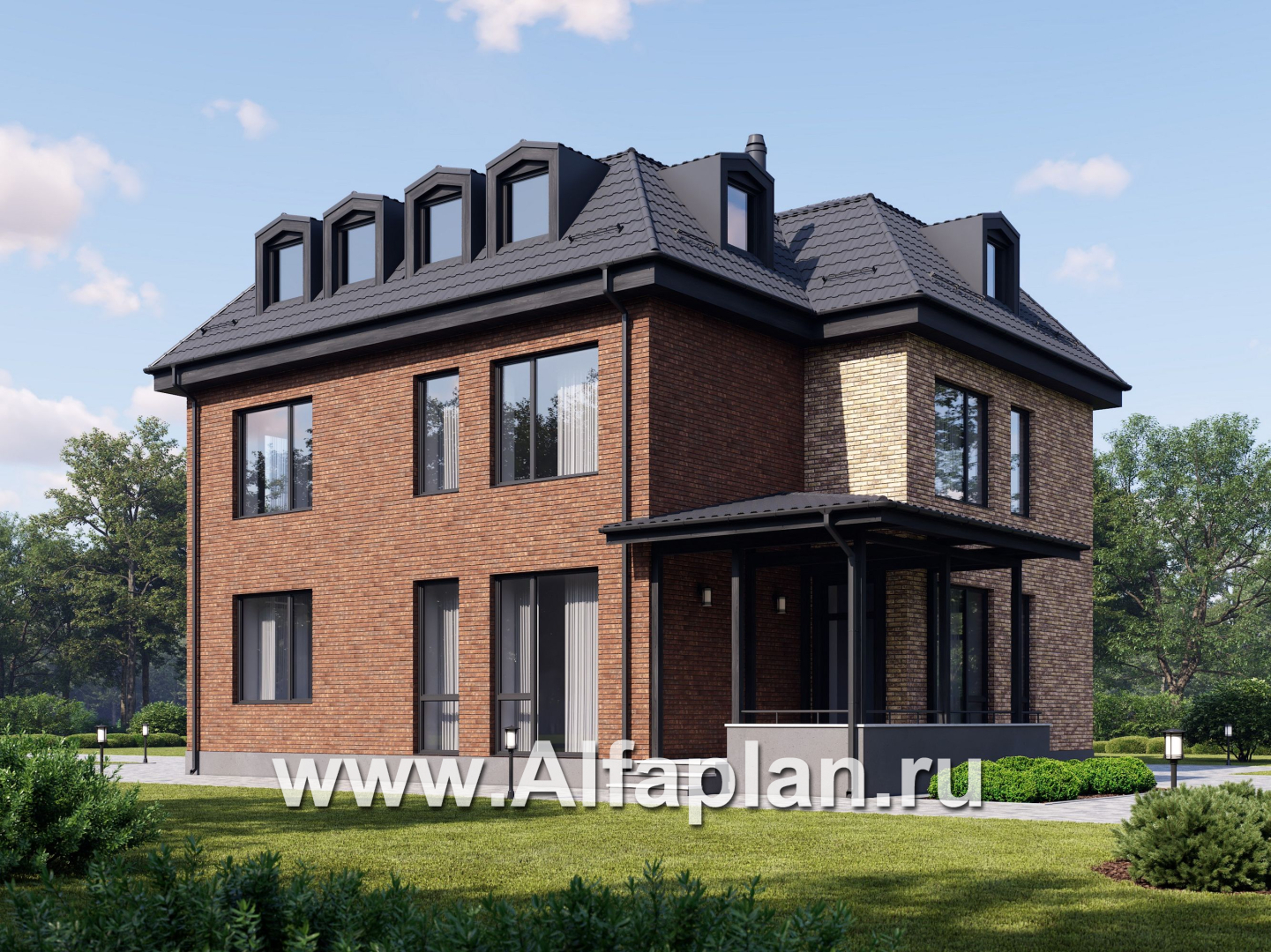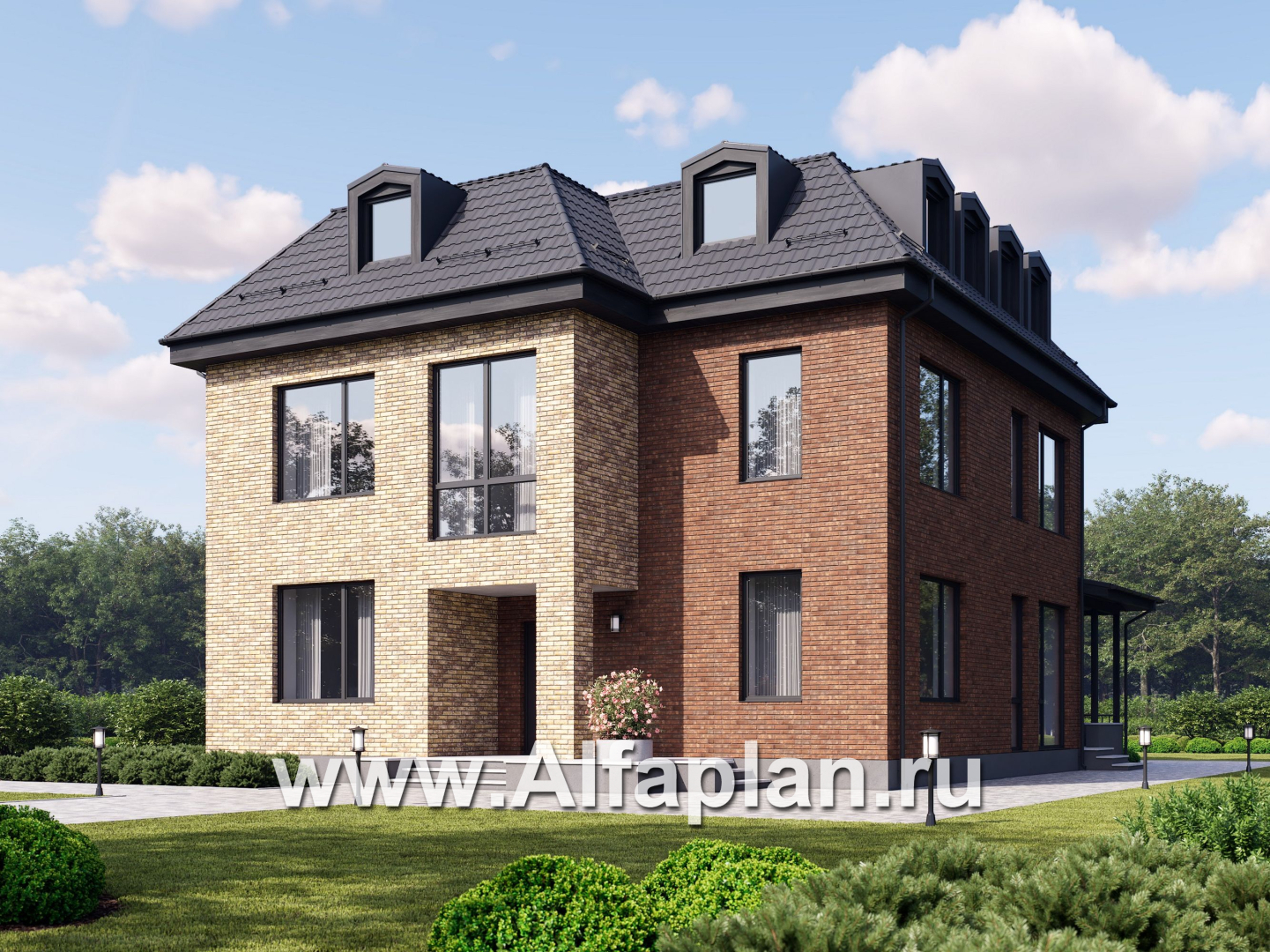Наружная отделка стен лицевой кирпич, декоративная штукатурка