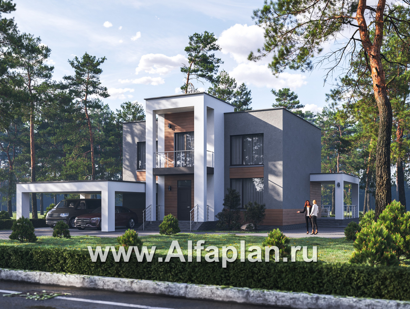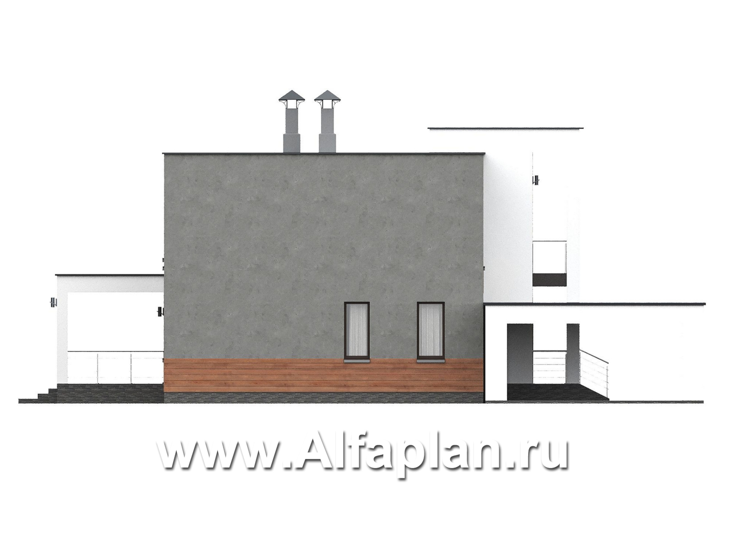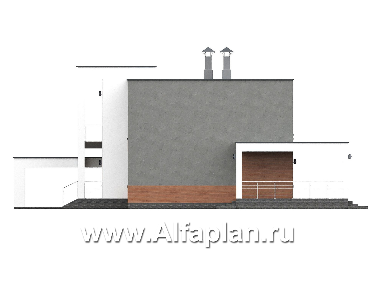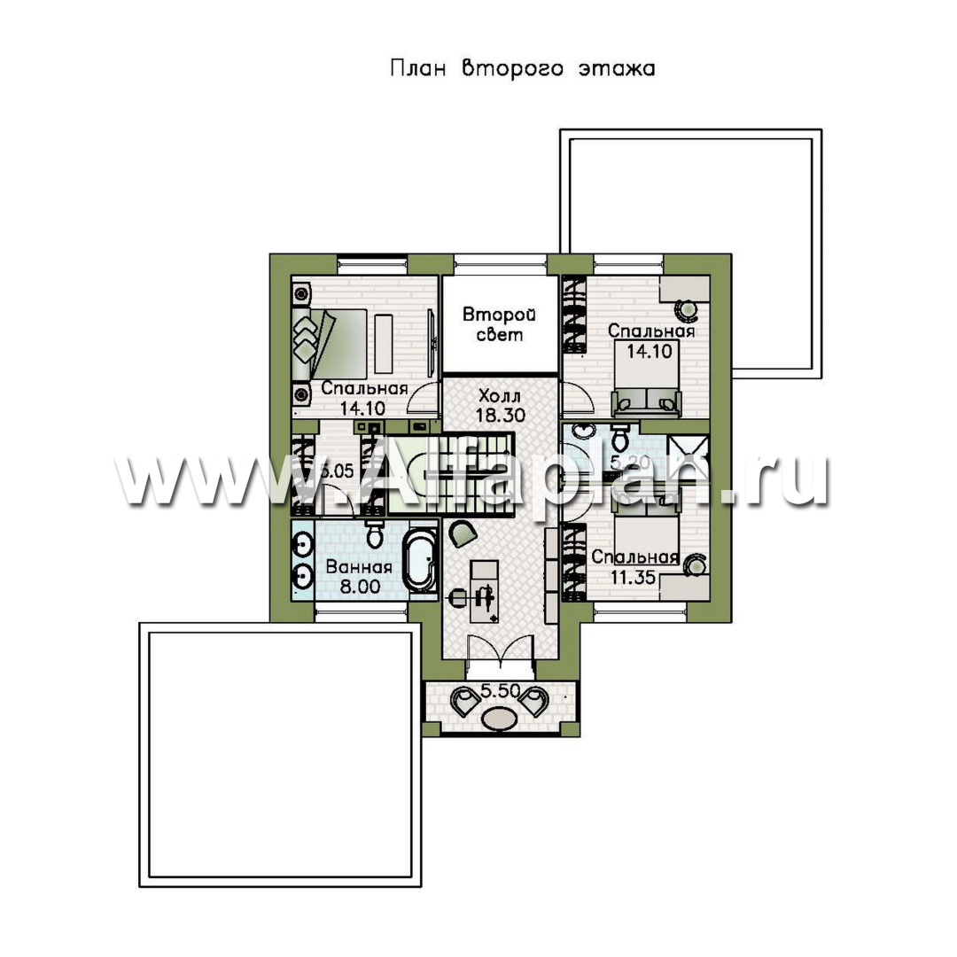 «Вермеер» - проект двухэтажного дома, планировка с мастер спальней, со вторым светом и с террасой, в стиле минимализм с плоской крышей