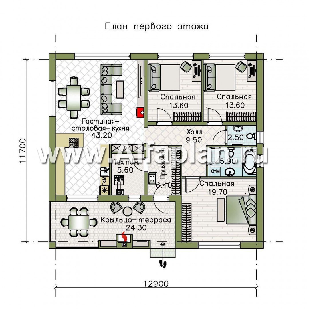 «Веда» - проект одноэтажного дома, 3 спальни, с двускатная крыша