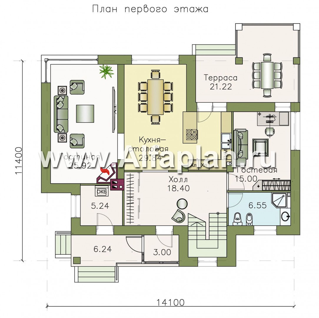 439A «Фортуна» - проект двухэтажного дома, планировка с кабинетом на 1 эт и с террасой