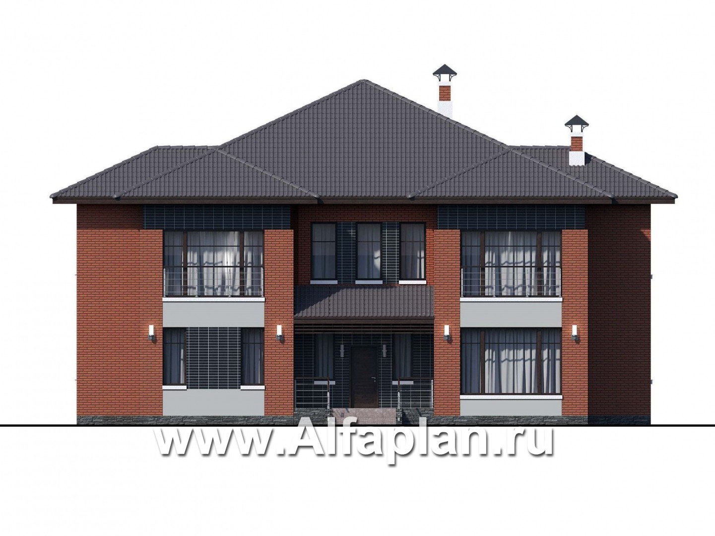 «Рейн» - проект современного двухэтажного дома, вилла со вторым светом в холле, с террасой