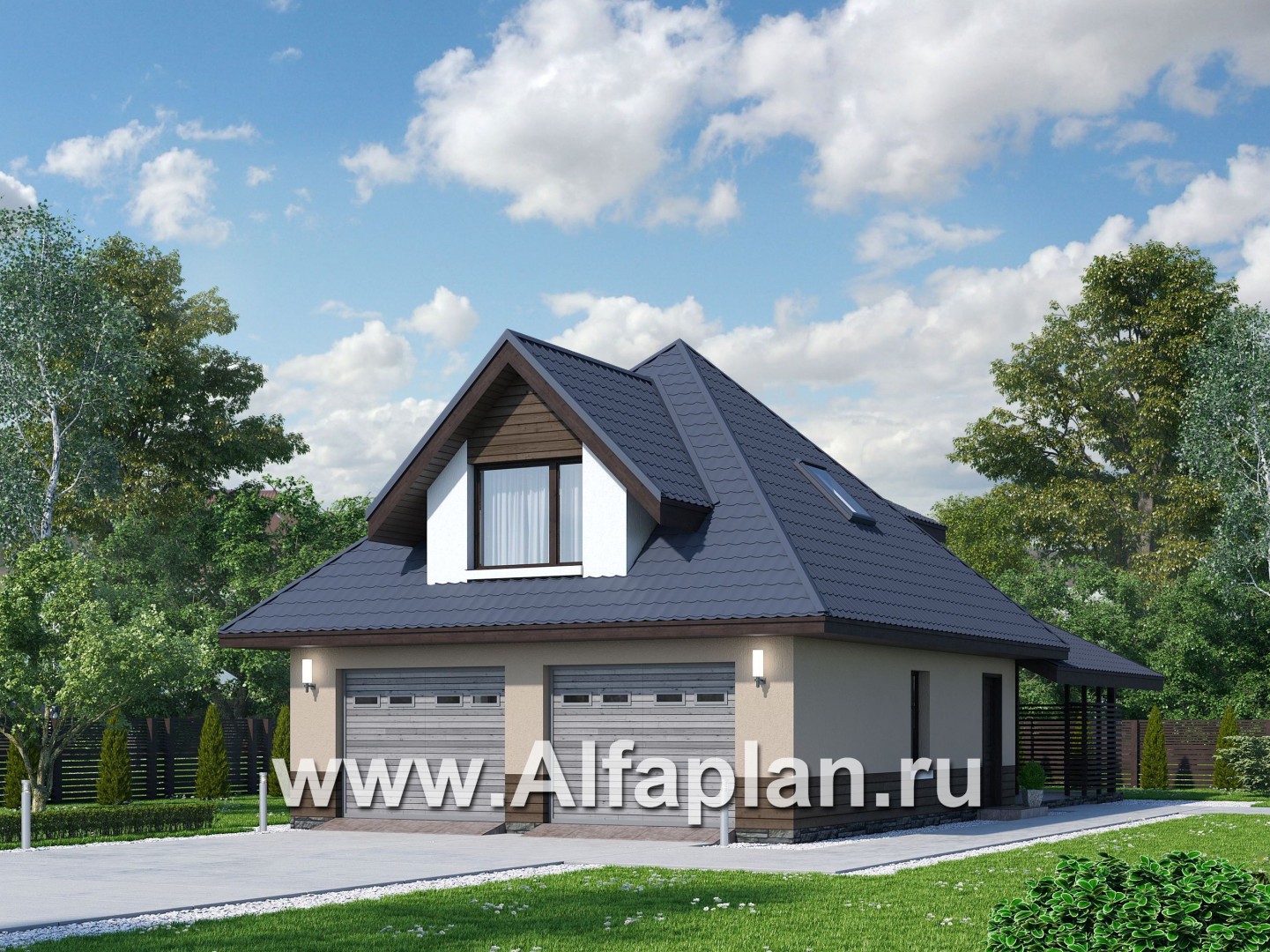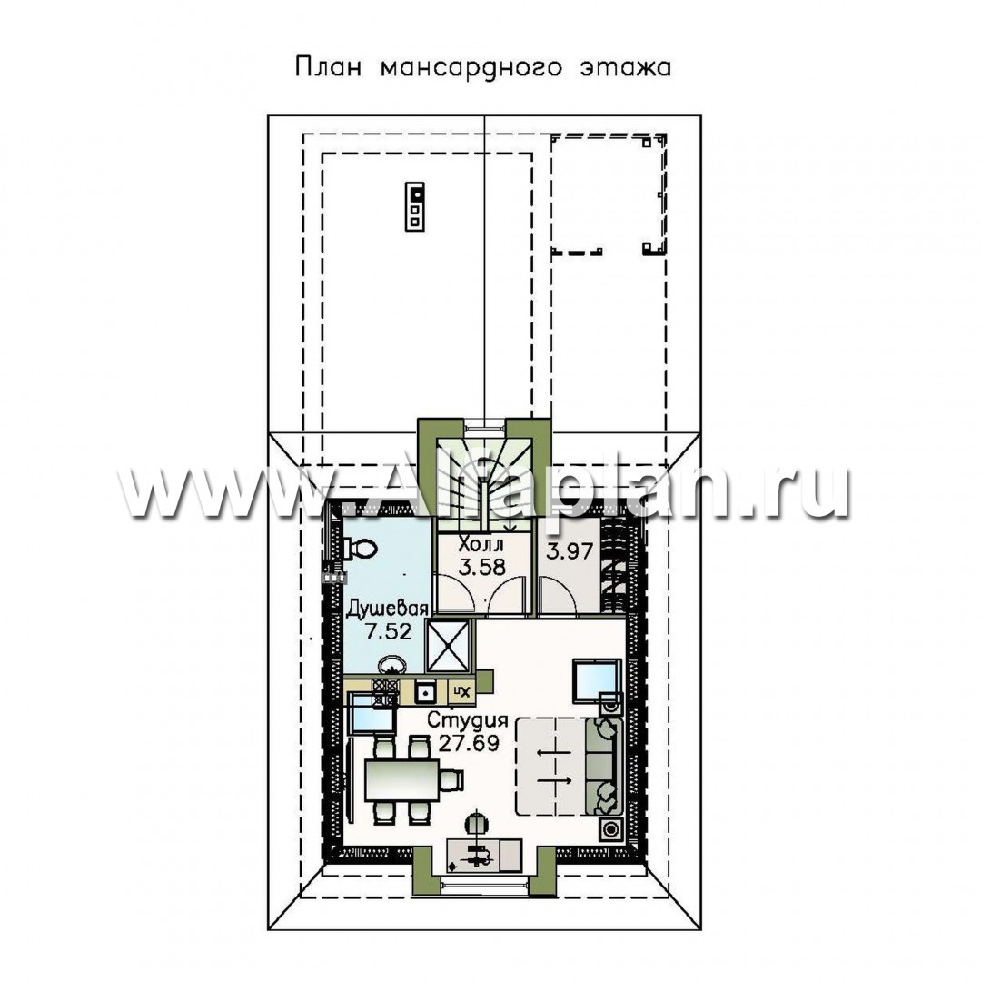 294P-S Проект гаража, планировка со студией в мансарде, и с хозблоком