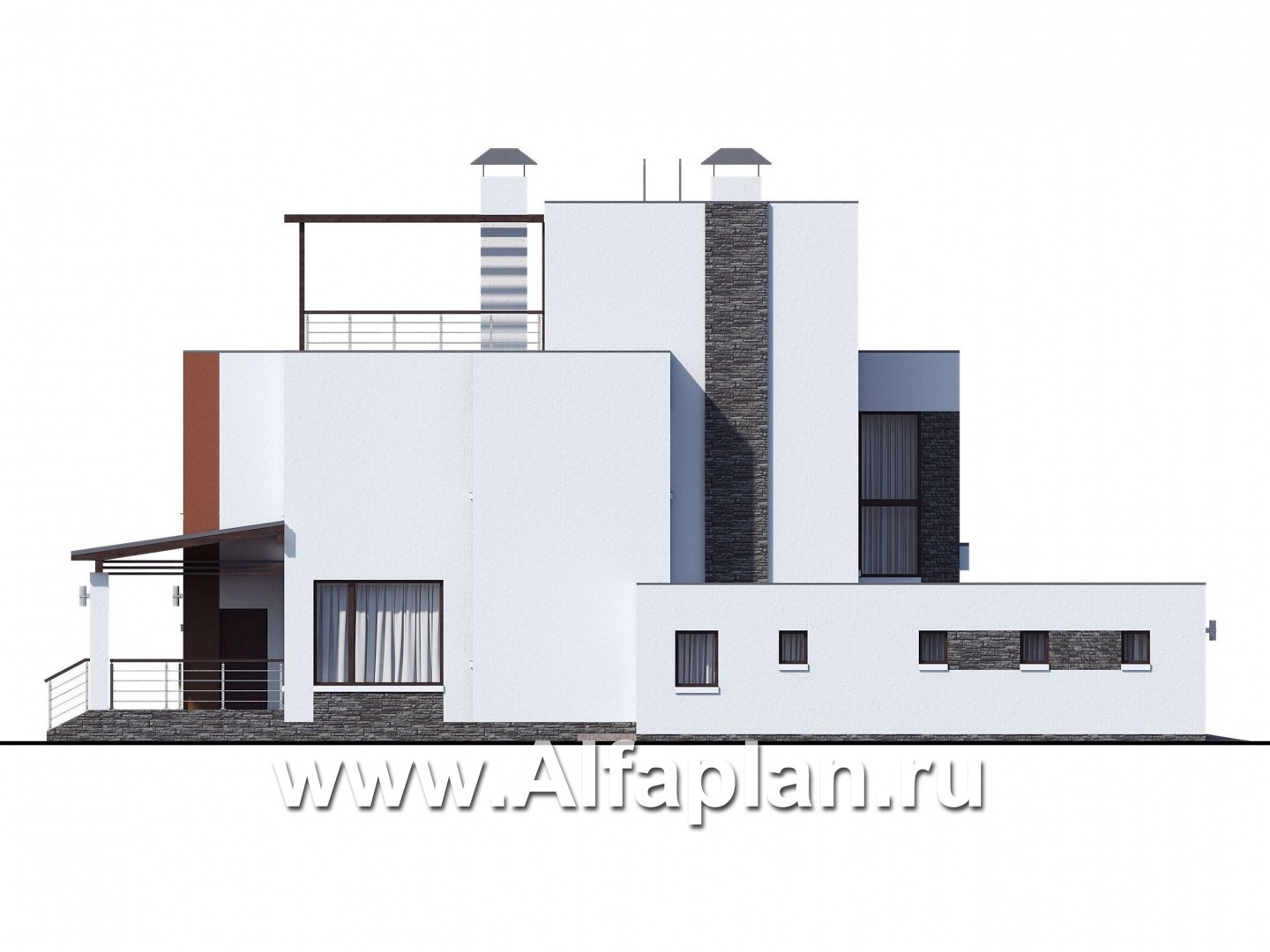 « Альстер» — проект двухэтажного дома в стиле хай-тек, элитая вилла, навес на 2 авто