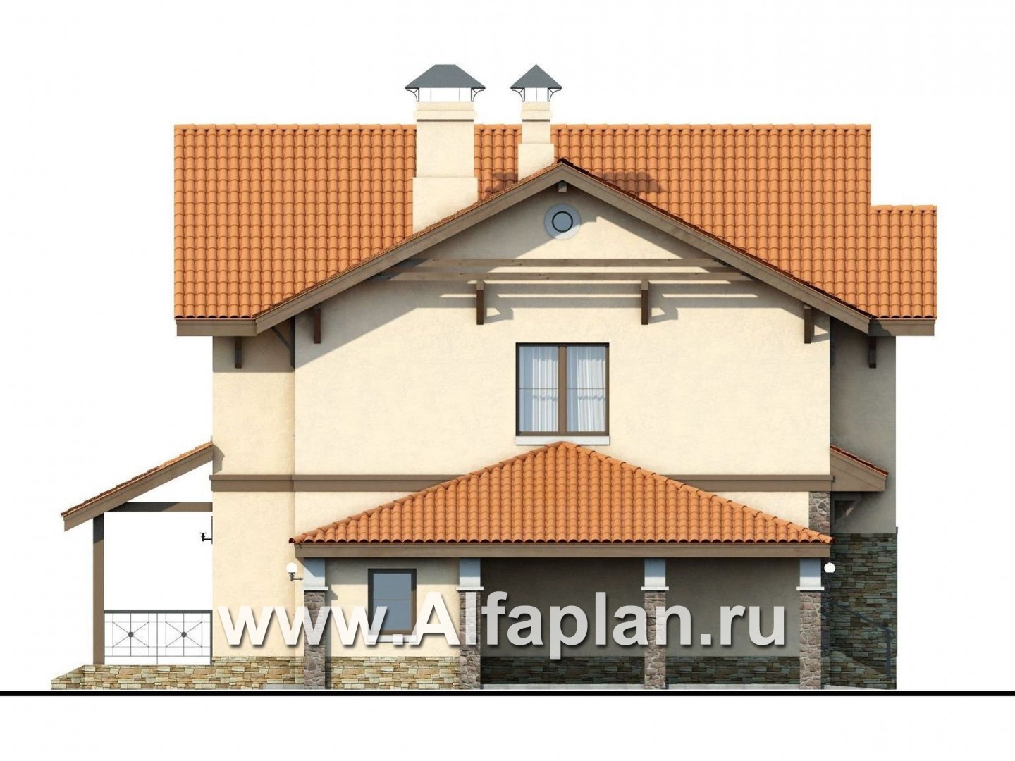 141A-S «Pro vita» - проект двухэтажного дома с эркером, с балконом и с террасой, навес на 1 авто