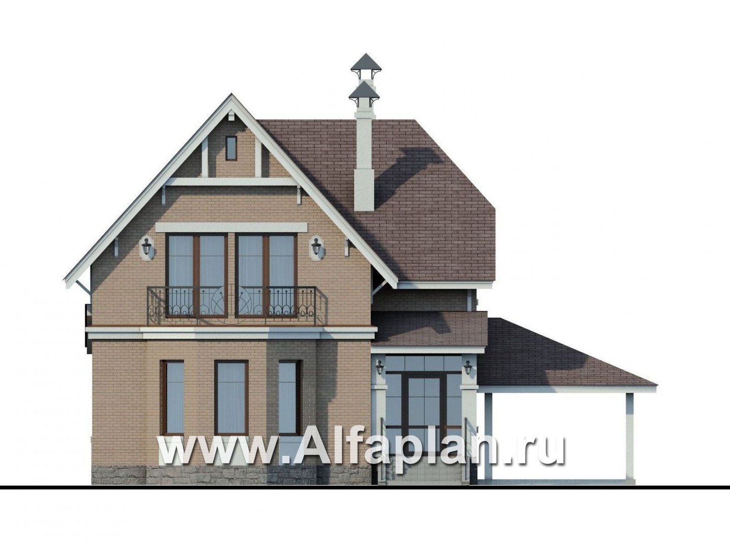 156B-S «Времена года» - проект дома с мансардой из газоблоков, с эркером и террасой, с навесом на 1 авто