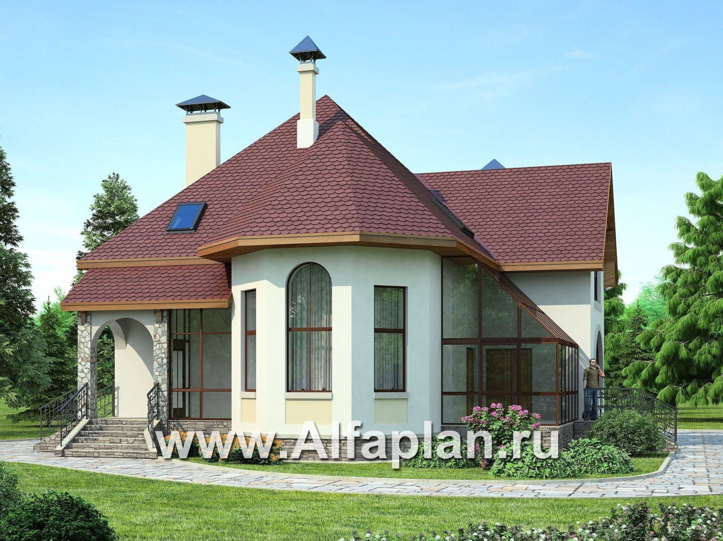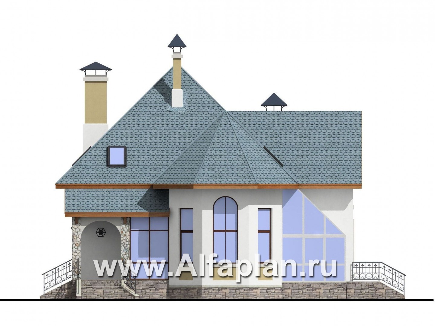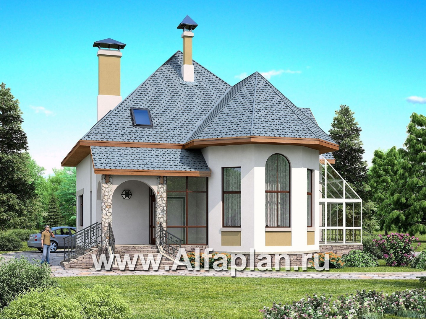60A-S «Золотые поля» - проект дома с мансардой, из кирпича, с эркером и с зимним садом