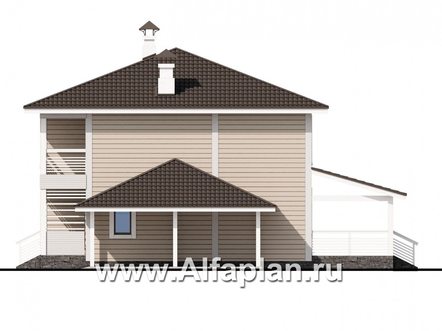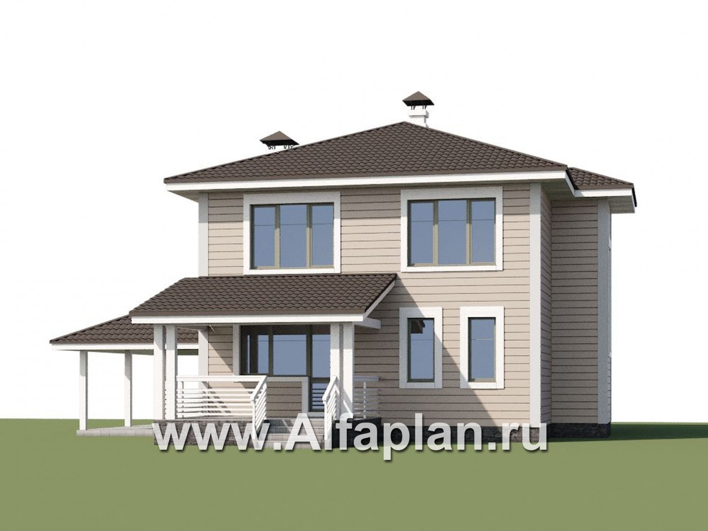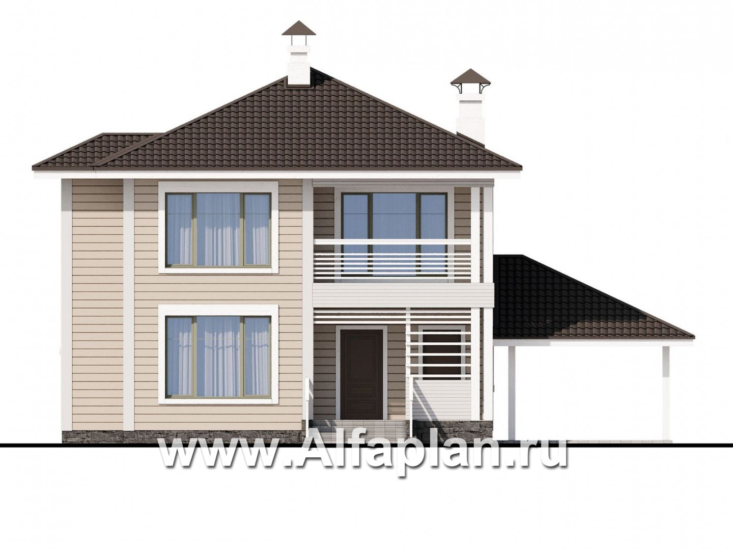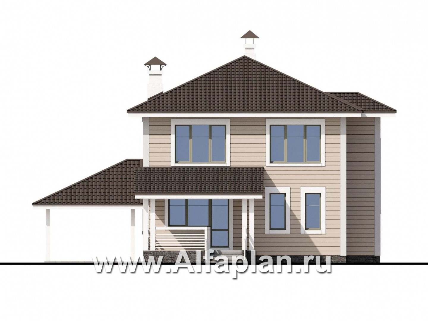 Существуют варианты проекта, без гаража-навеса, и с гаражом-навесом на два автомобиля.