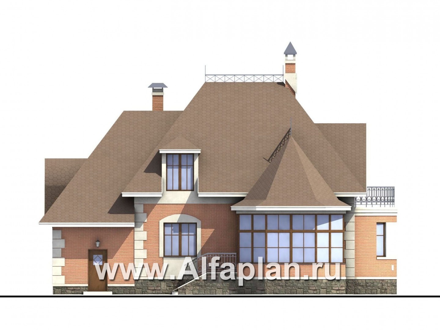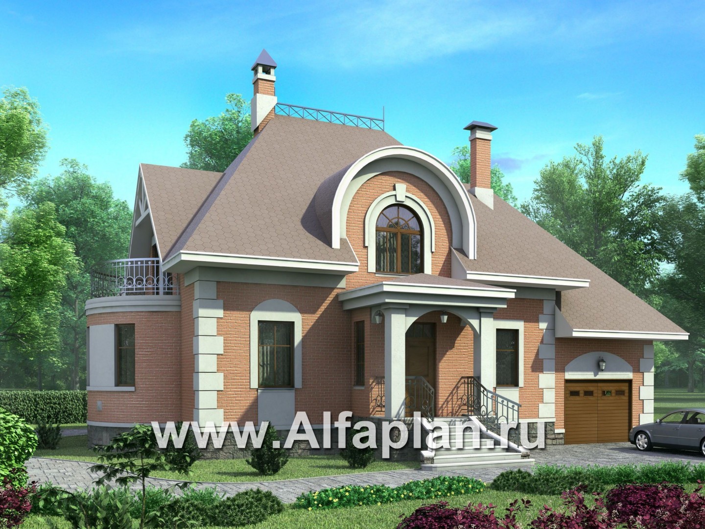 50B-S «Эвита» - проект дома с мансардой, с эркером и с террасой, с гаражом, в стиле эклектика