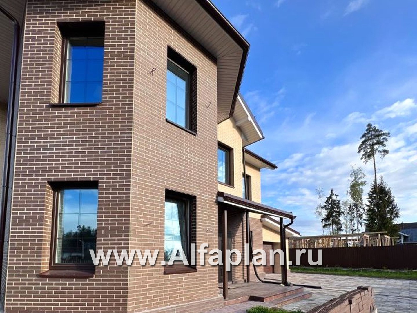 Наружная отделка стен лицевой кирпич, декоративная штукатурка