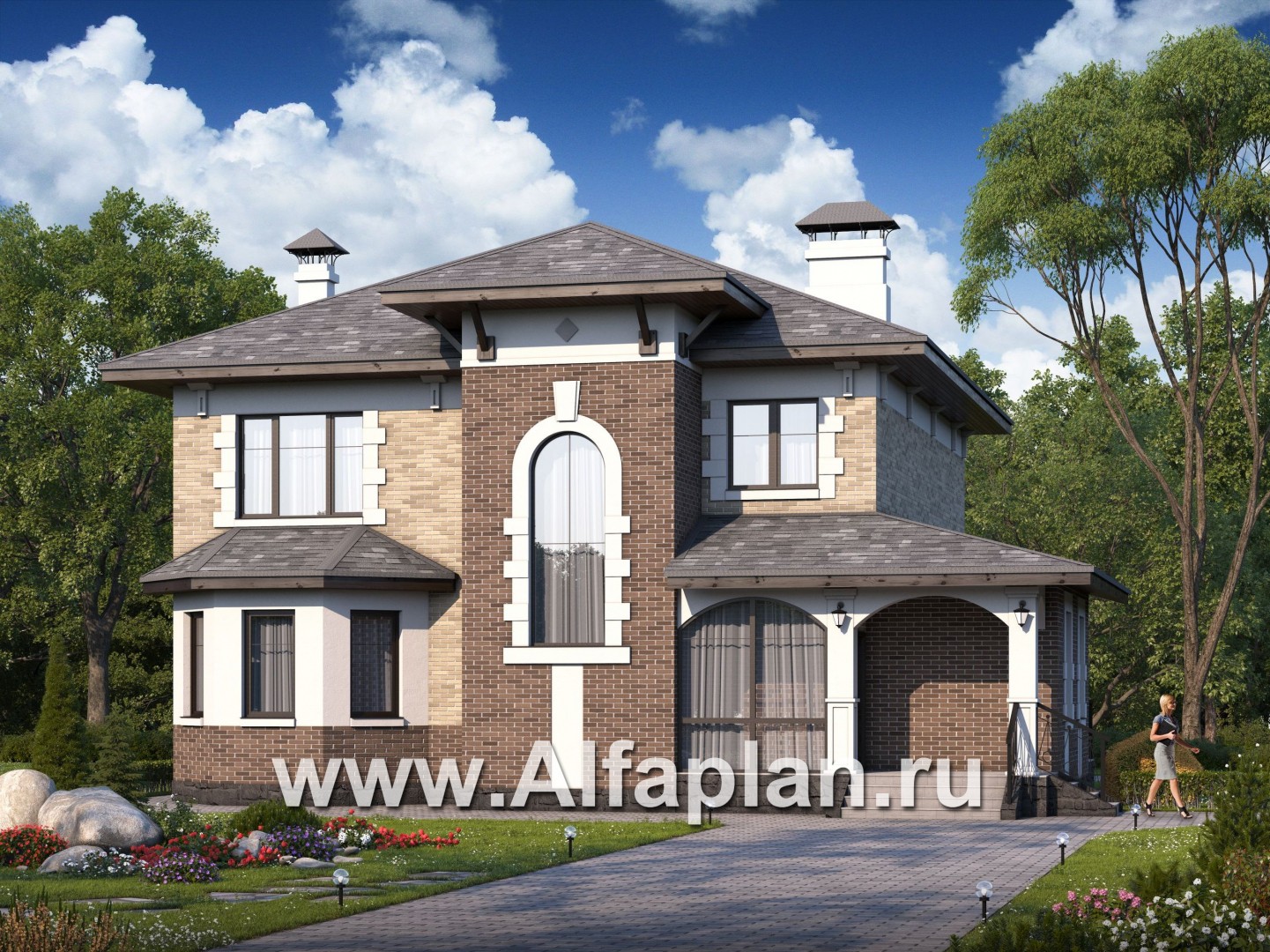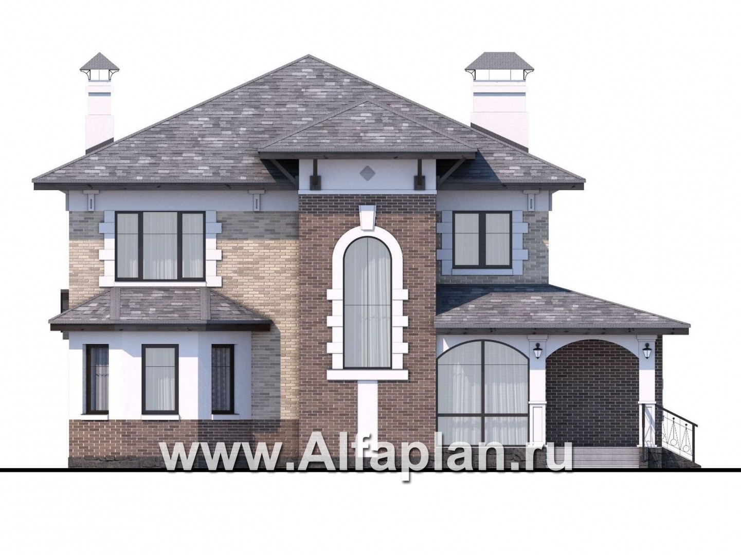 «Амадей» - проект двухэтажного дома, планировка с эркером и с террасой