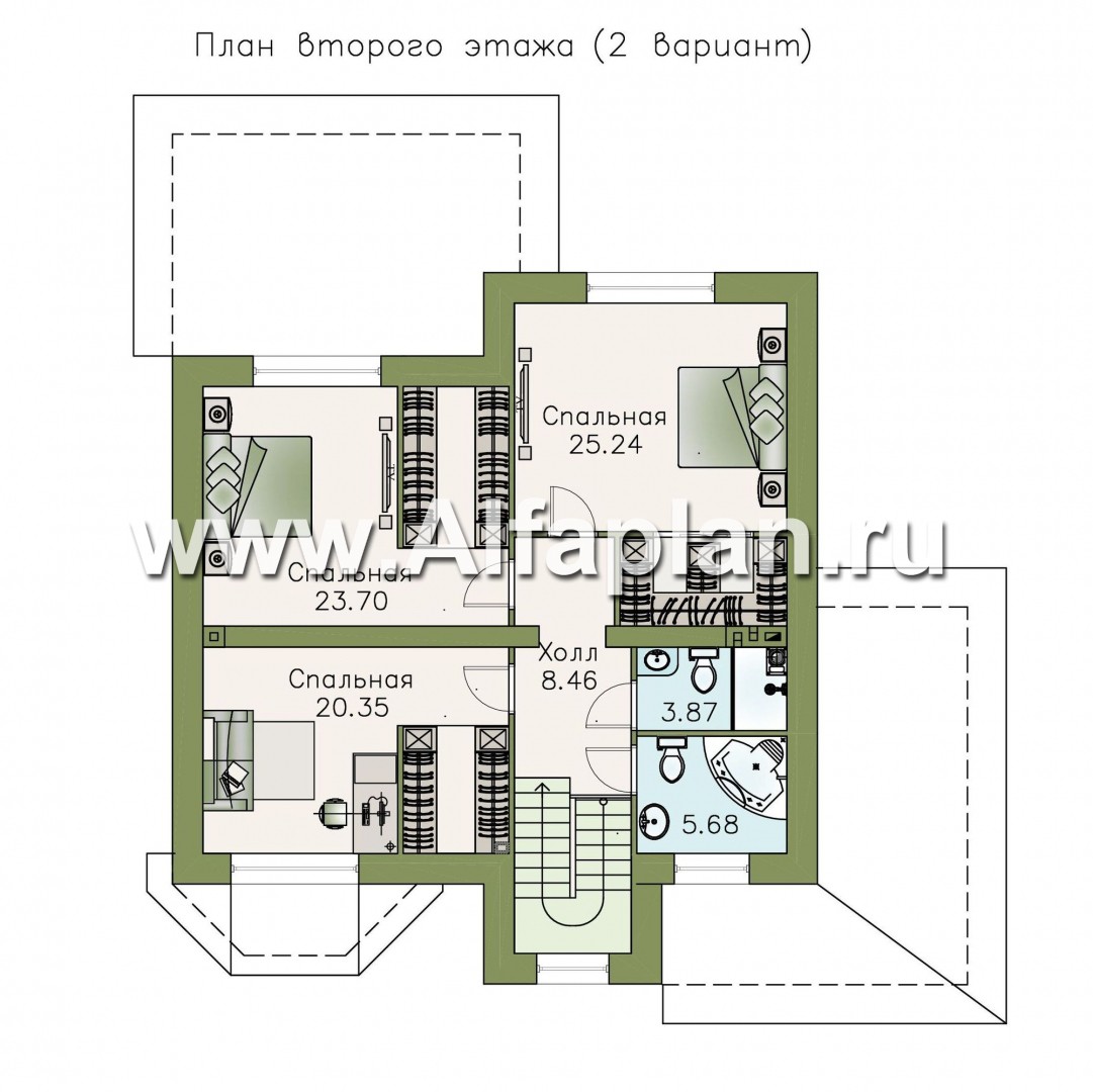511A-S «Амадей» - проект двухэтажного дома, планировка с эркером и с террасой