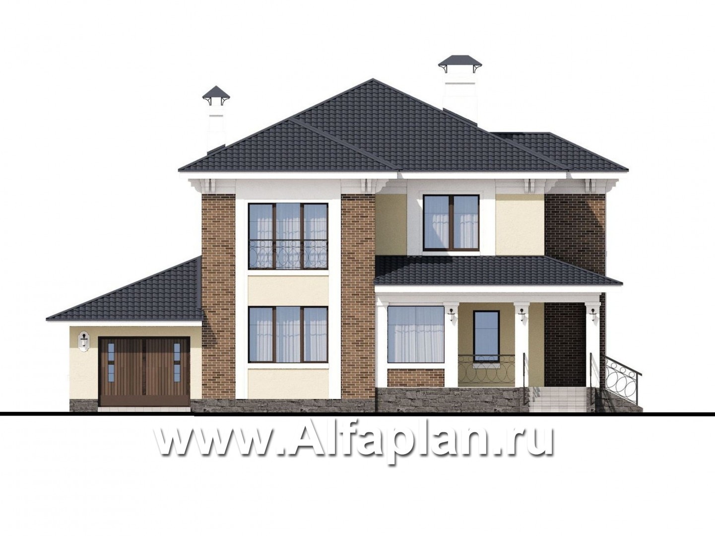 426B-S «Беатрис» — проект двухэтажного дома из кирпича, с террасой, с гаражом