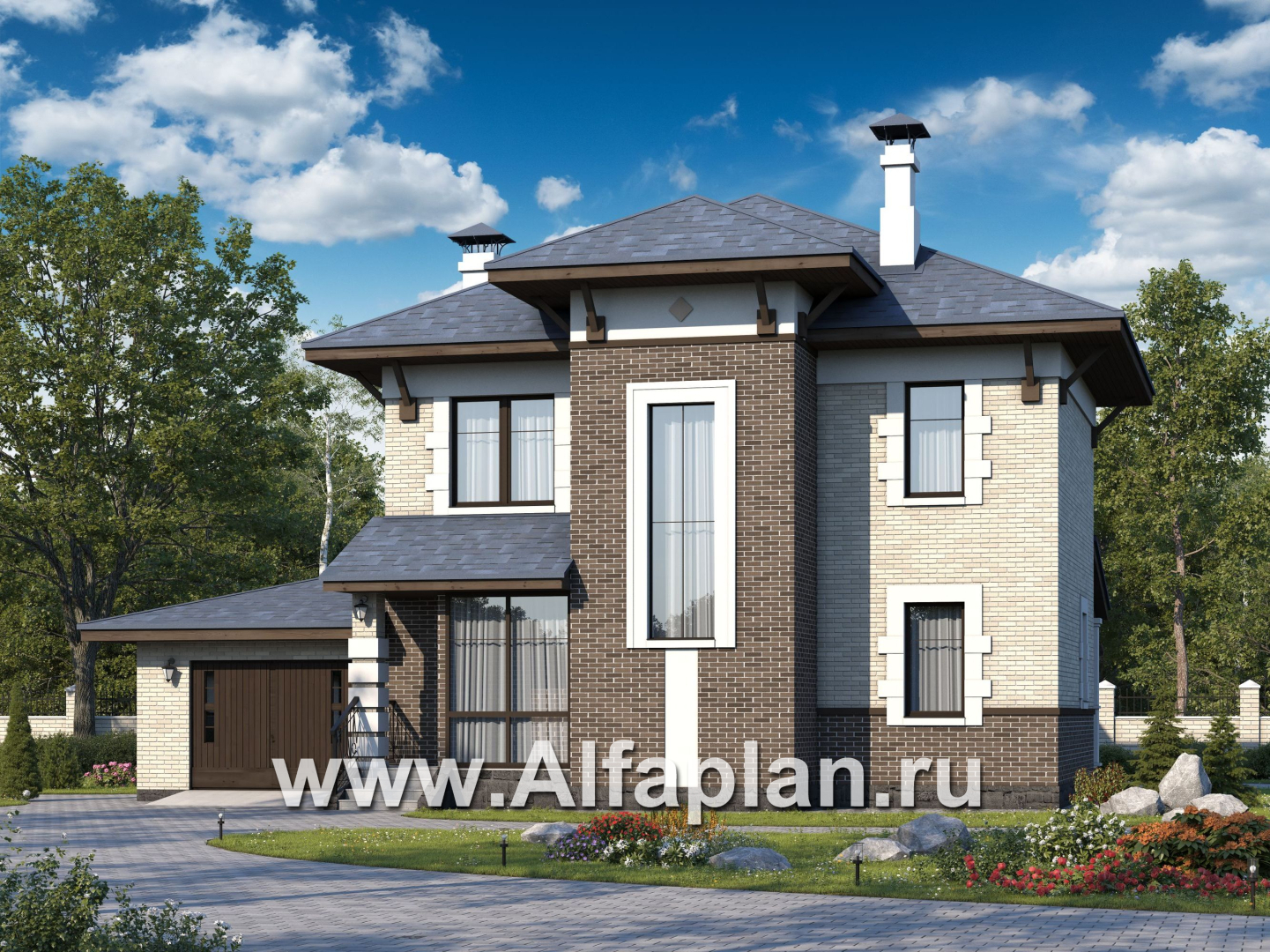 «Виконт» - проект двухэтажного дома, с террасой, удобная планировка с гаражом, в стиле эклектика