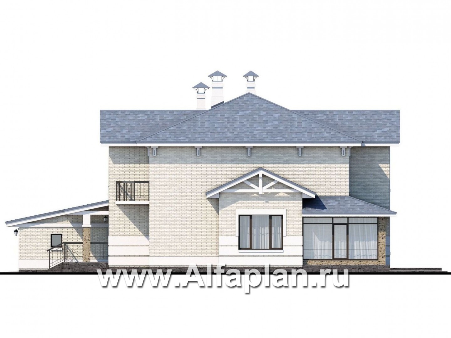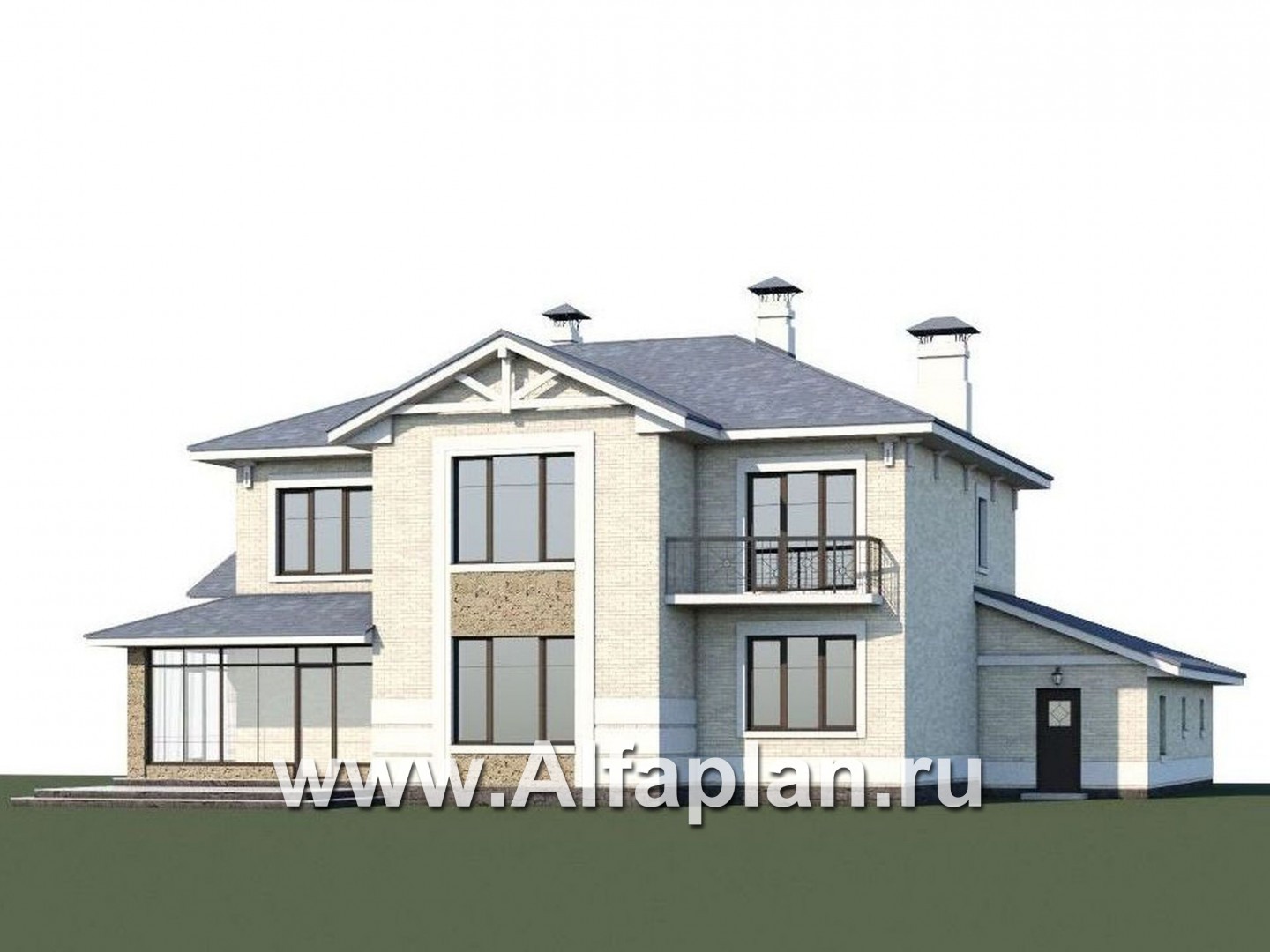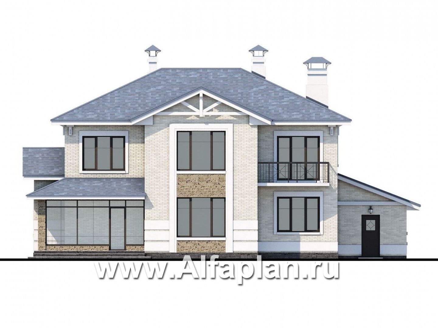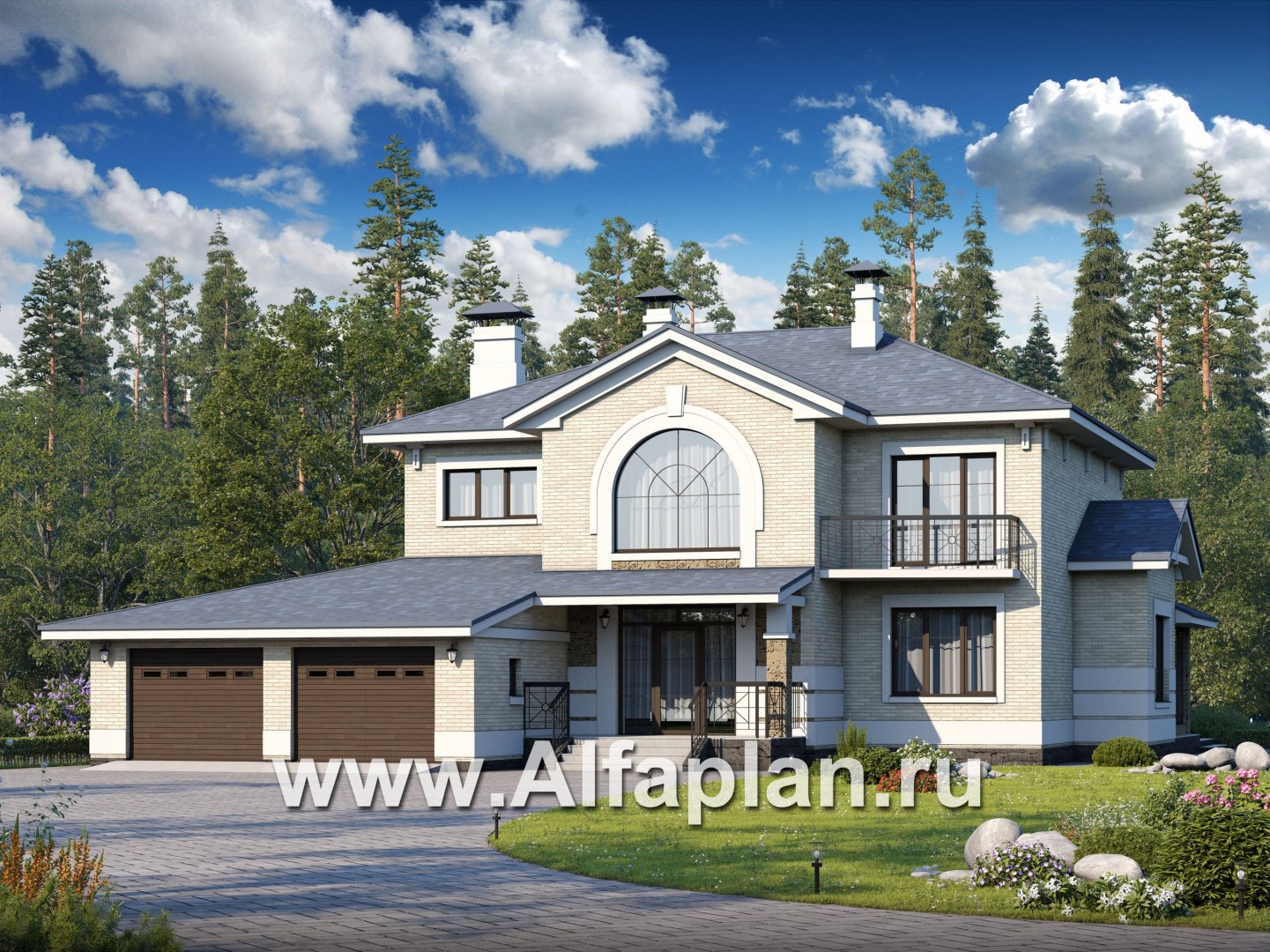 318B-S «Аутентик» - проект двухэтажного дома, с двусветным холлом и верандой, арочное окно, гараж на 2 авто, в стиле эклектика