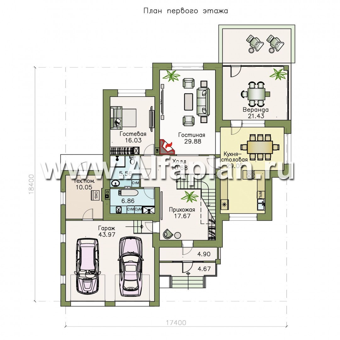 «Аутентик» - проект двухэтажного дома, с двусветным холлом и верандой, арочное окно, гараж на 2 авто, в стиле эклектика - технические характеристики