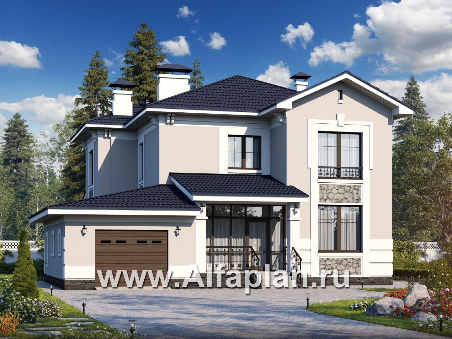 «Белоостров» - проект двухэтажного дома, планировка с кабинетом на 1 эт, с террасой и с гаражом на 1 авто