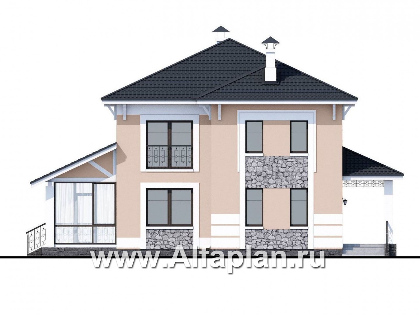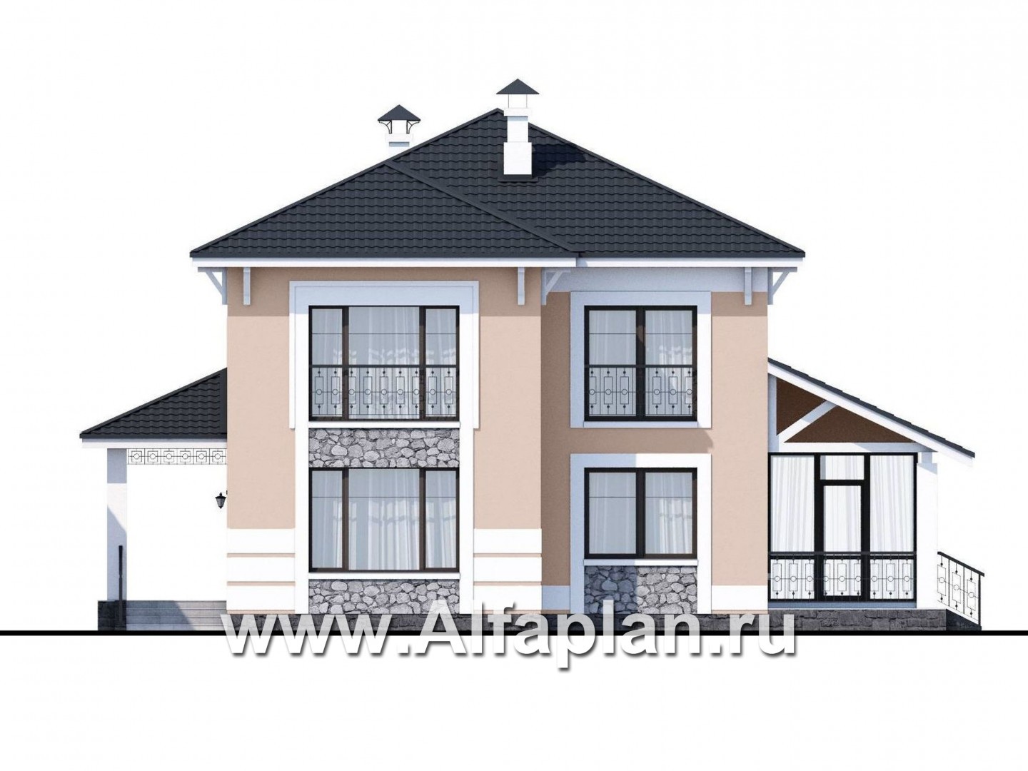 Представленный проект коттеджа имеет классический внешний вид, что отнюдь не делает его обыденным, наоборот, придает элегантности, ведь классика всегда была и будет актуальна. Дополнительным плюсом проекта является наличие двух летних зон отдыха – террасы с легкой кровлей и веранды, остекленной ударопрочными стеклопакетами. Данные зоны можно оборудовать по своему желанию. Терраса, например, прекрасно подойдет для установки удобных мягких кресел, а веранда послужит обеденной зоной в теплое время года.
