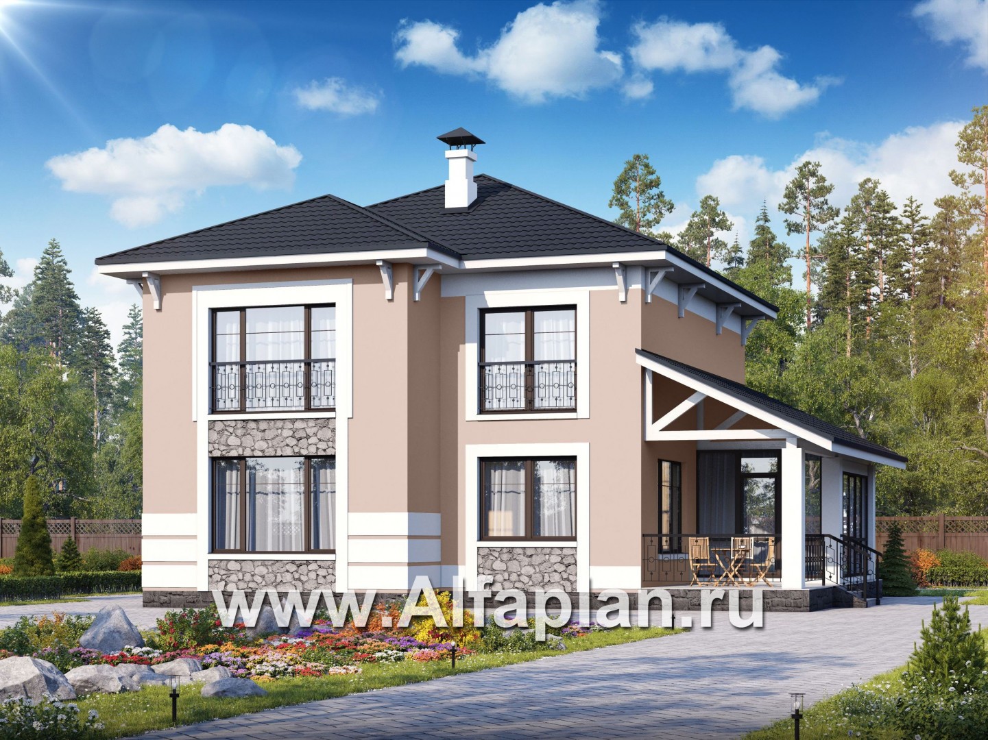 «Счастье рядом» - проект дувухэтажного дома из газобетоа, план с террасой и 3-мы спальнями - технические характеристики