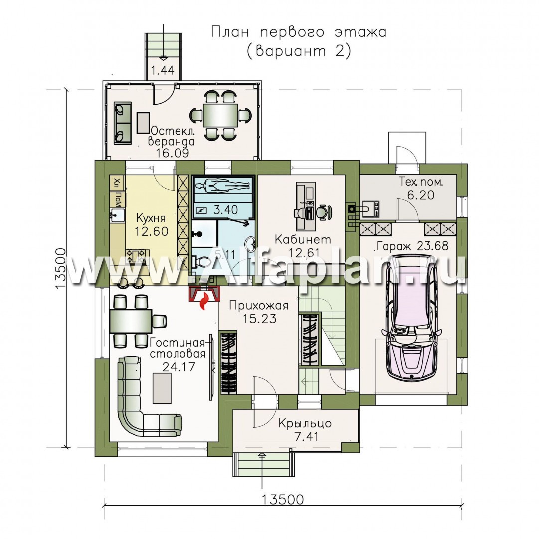 Добрый день! Интересный проект, можно узнать размер кухни по периметру в первом варианте (с кладовкой) и размеры гаража.
