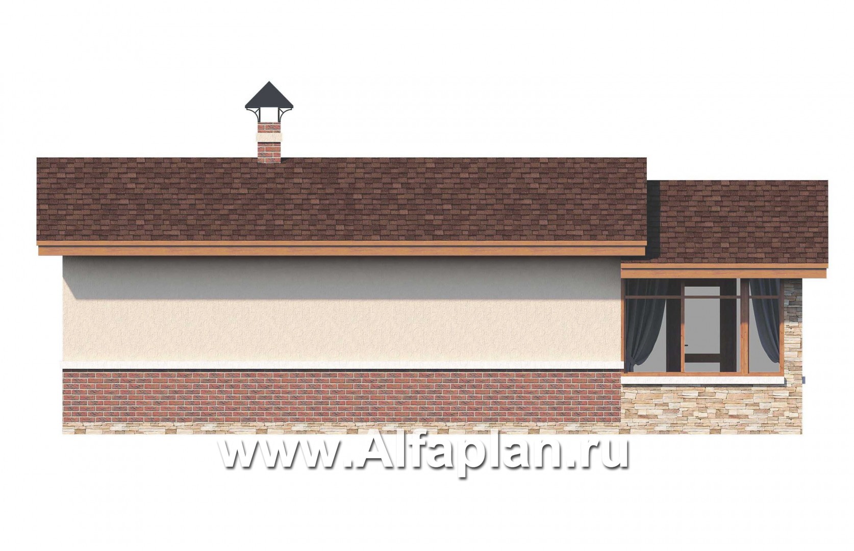 Если необходимо сделать крытую террасу, мы можем выполнить такой вариант с кровлей в Паспорте проекта или в Рабочем проекте за небольшую доплату.