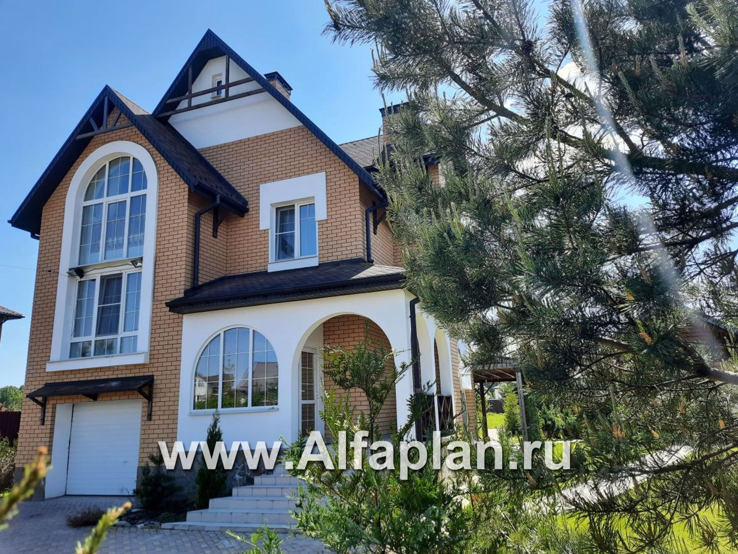 В этом коттедже воплотились пожелания многих заказчиков, подыскивающих для себя проект будущего дома. В первую очередь, - это гараж и зона spa в цокольном этаже, затем жилая комната и двусветная гостиная на первом, и наконец, уютный  холл  в спальной зоне. При этом у дома небольшая площадь и компактный план. Проектом предусмотрены два этажа и мансарда. Парадность всему облику дома придает, несомненно, главный фасад. Фундаментом коттеджа по проекту становится монолитная ж/б плита. Наружные стены могут быть альтернативно возведены как из газобетонных блоков, так и из кирпича. Поэтому коттедж можно условно отнести к категории «проекты домов из кирпича и газобетона».