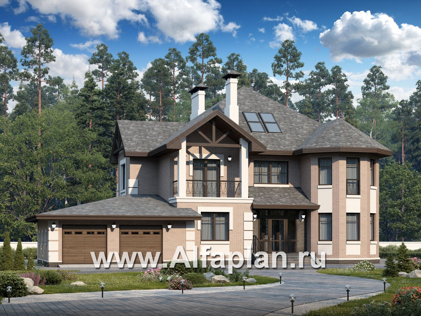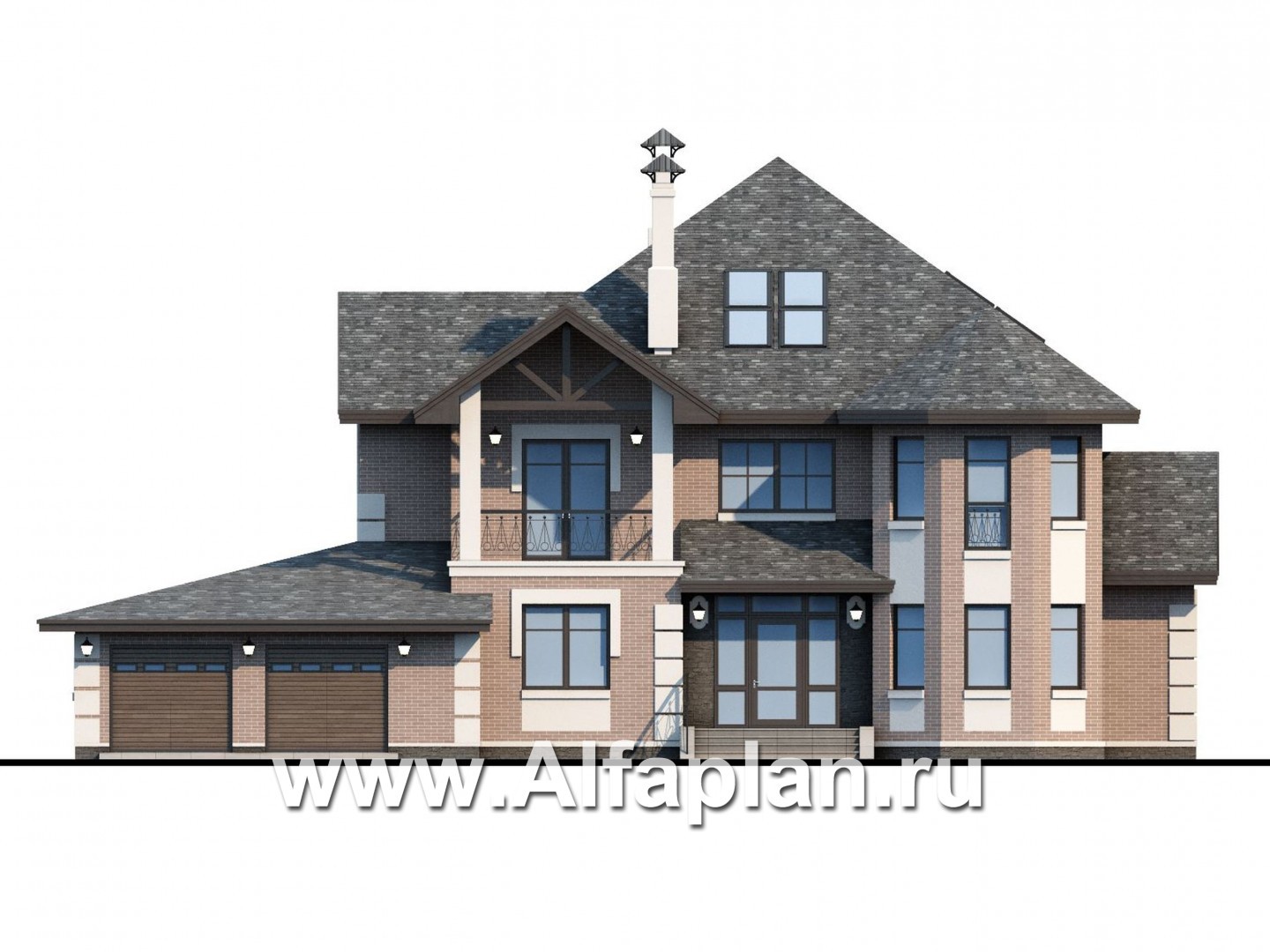 «Воронцов» - проект двухэтажного дома из газобетона с эркером, с биллиардной в мансарде, с гаражом на 2 авто