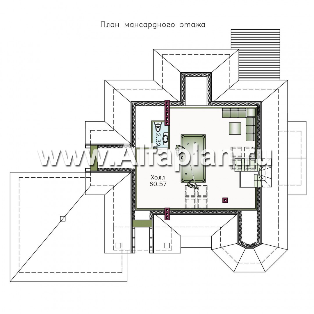 Площадь мансарды 62.89 м²