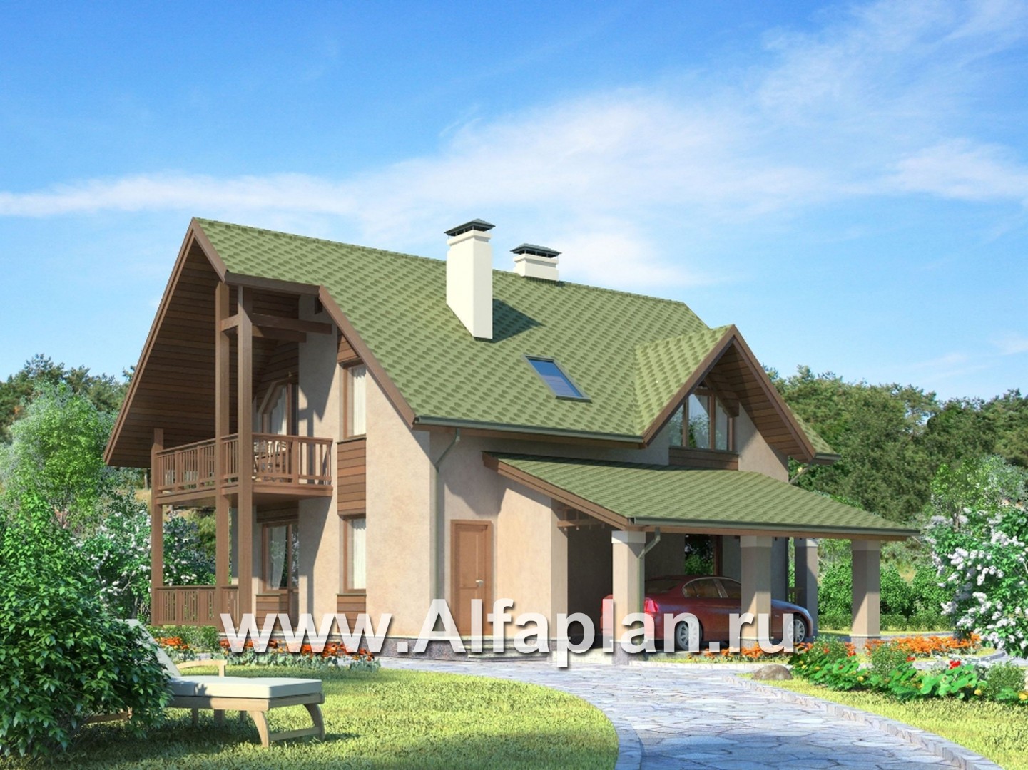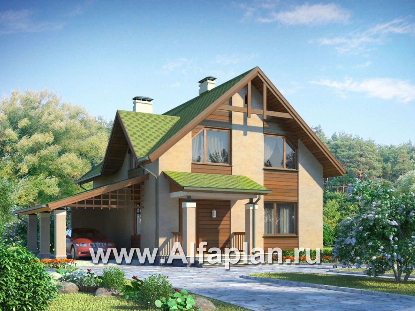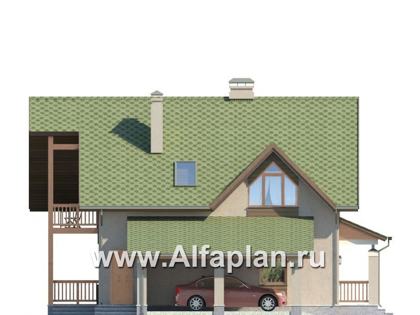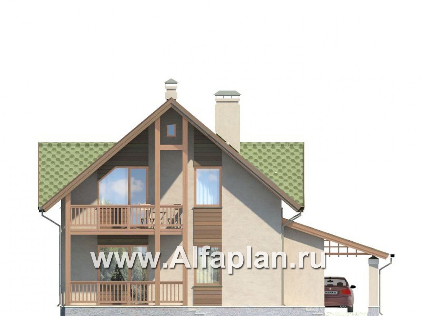 Проект дома с мансардой, 3 спальни, с навесом на 1 авто