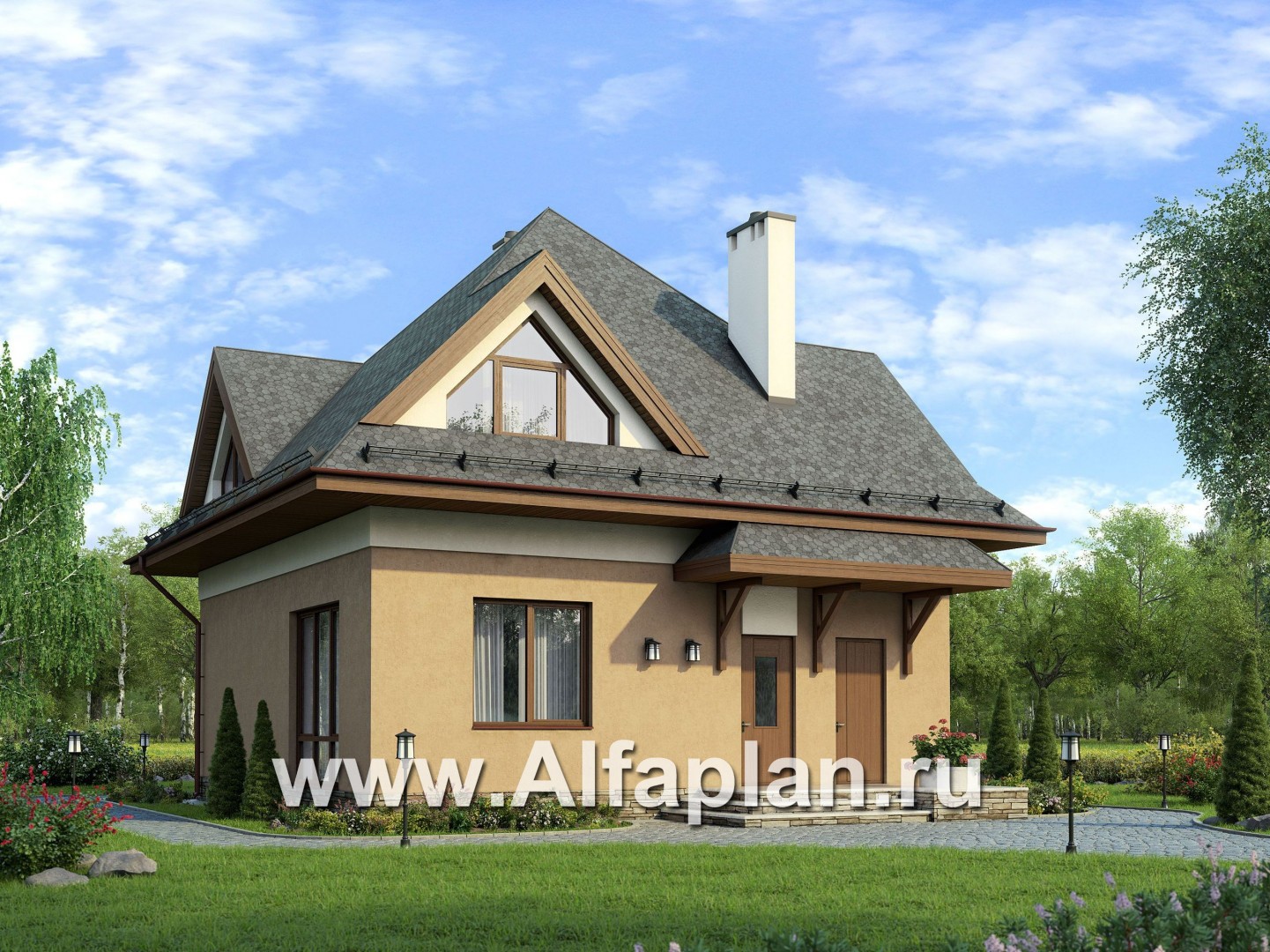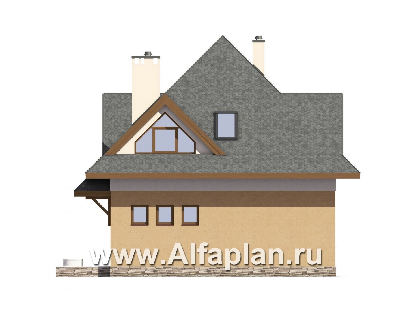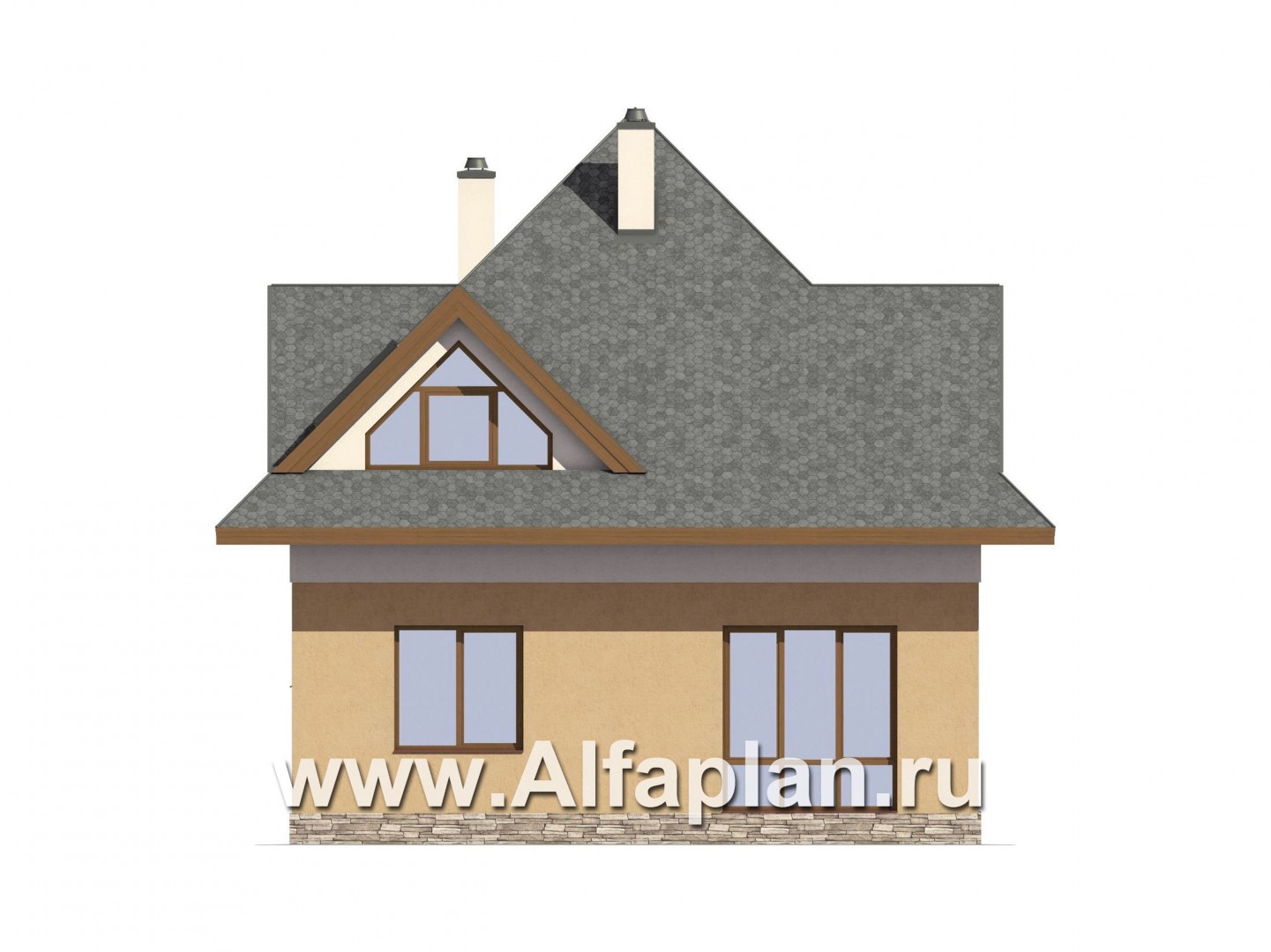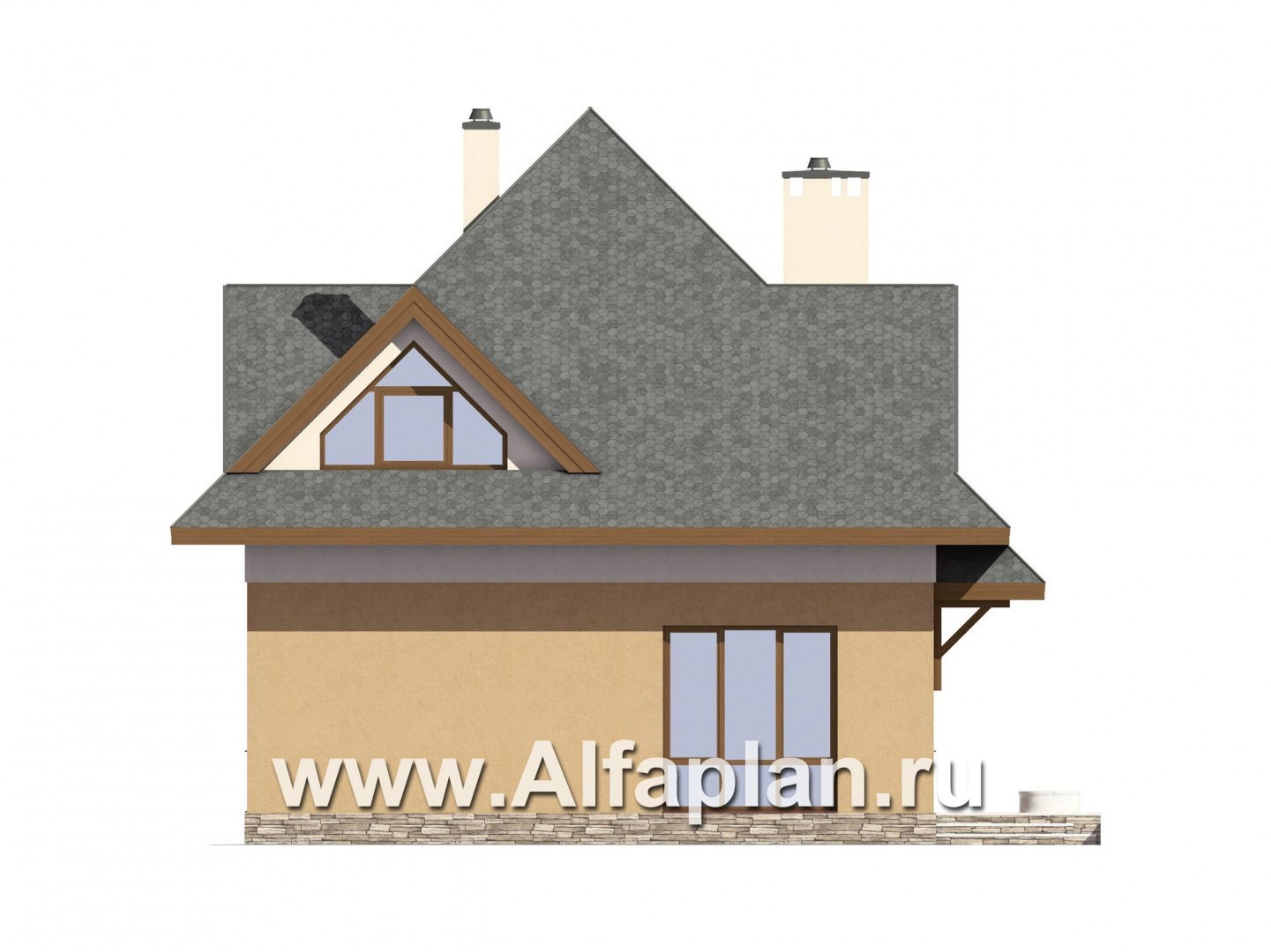Проект дома с мансардой, 3 спальни, открытая планировка с камином, гостевая комната на 1 эт