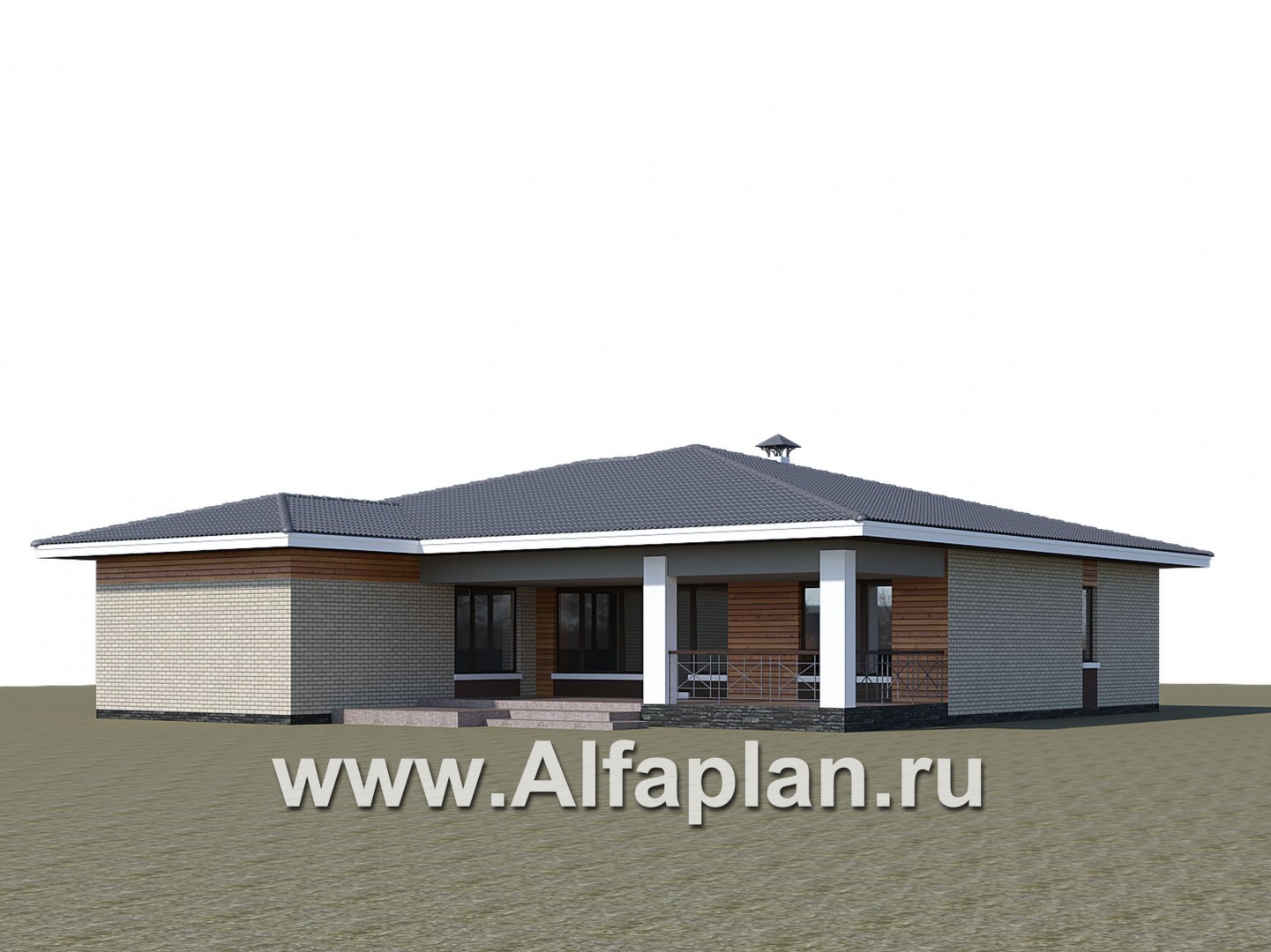 666A-S «Горизонталь» - проект одноэтажного дома, в современном стиле, с террасой