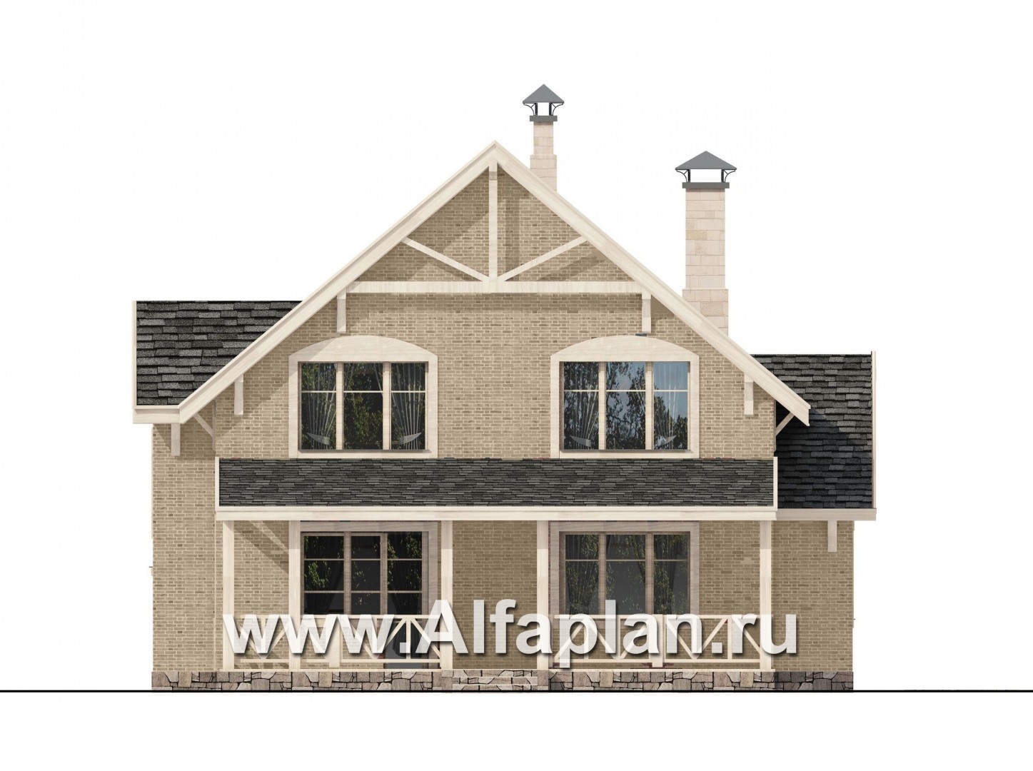 Этот проект отличается от своего предшественника 159А увеличенным планом .в глубину на 2 м.   и, соответственно,  увеличнной площадью дома.  Дом может быть построен как из кирпича, так и из газобетона, безусловно, напоминает о скандинавском стиле. Тут и чистота линий, и лаконичность дизайна,  и подчеркнутая геометричность форм. Чтобы убедиться в этом, достаточно взглянуть на рифмующийся рисунок кровли основного здания и главного эркера или декоративные внешние сваи, присутствующие на каждой стороне здания. Еще одна отличительная черта скандинавского стиля, прослеживающаяся здесь, – большое количество остекленных поверхностей. Достаточно упомянуть панорамные окна эркера, холл и террасу со стороны двора.
