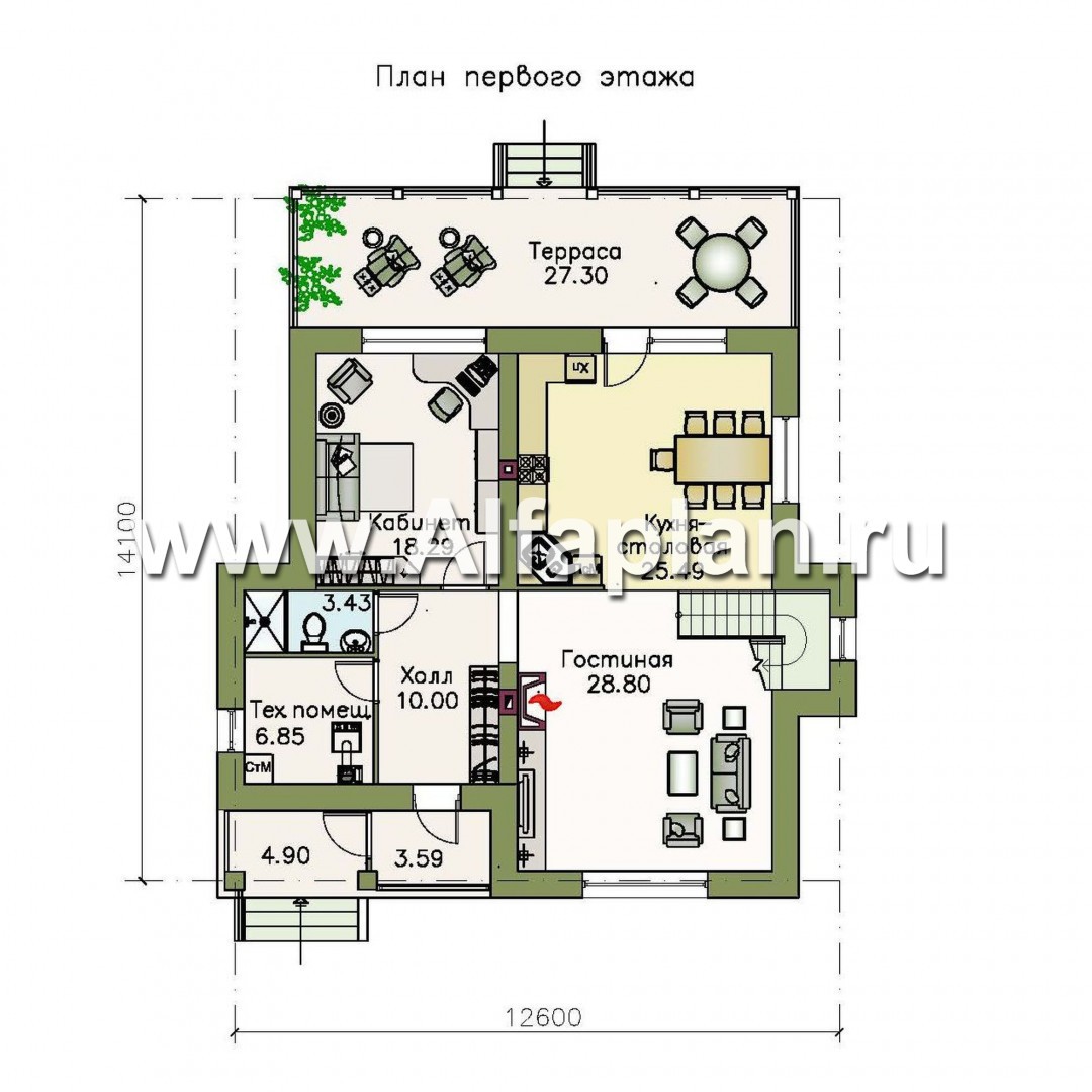 159A-2 «Новая пристань» - проект дома с мансардой, из блоков, планировка с кабинетом на 1 эт, с террасой